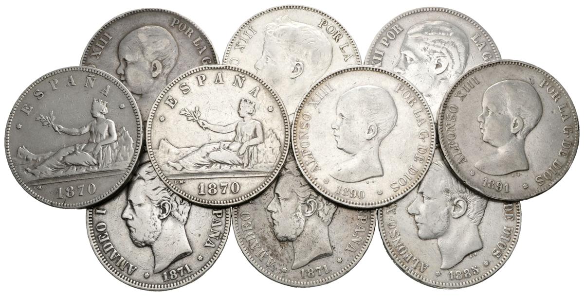 CENTENARIO DE LA PESETA. Lote compuesto por 10 Duros de plata. BC/MBC-. A EXAMINAR.
