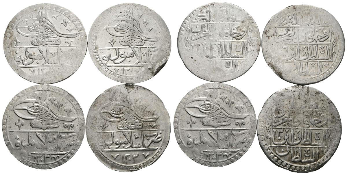 TURQUIA (Imperio Otomano). Lote compuesto por 4 monedas de 1 Yuzluk de Selim III (1879) Año: 1, 2, 3 y 6. Ar. MBC/MBC+.
