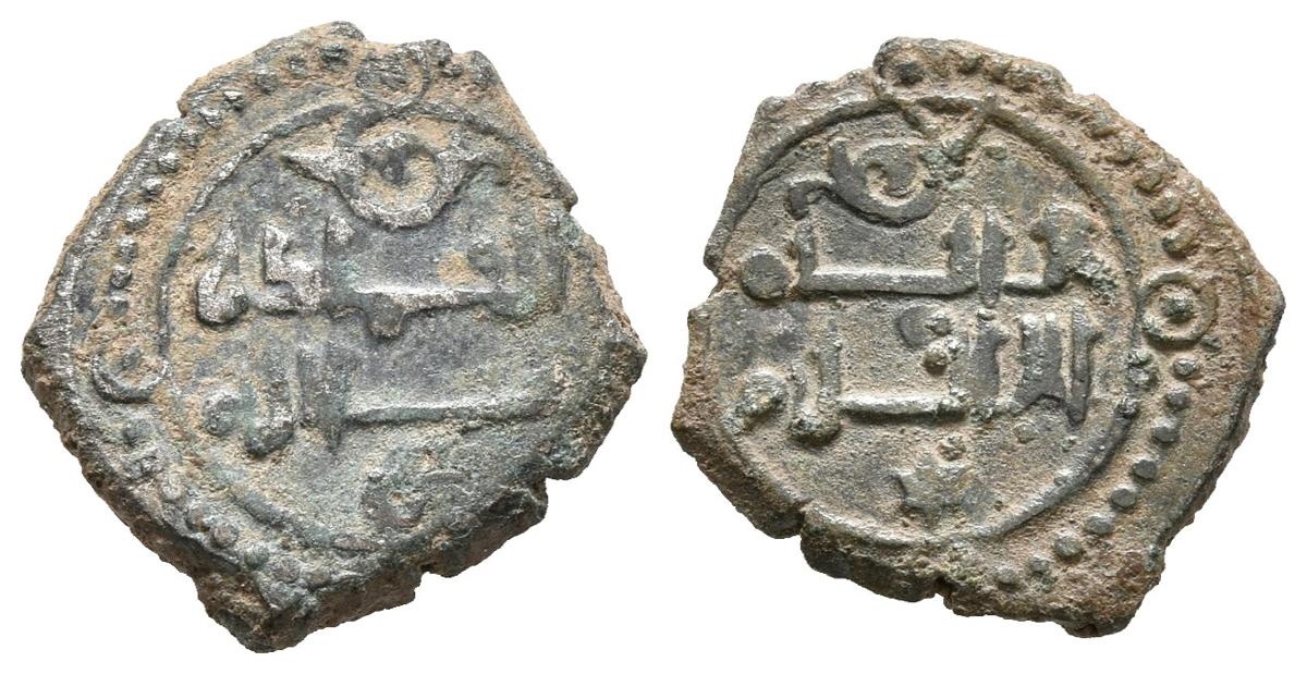 TAIFA DE TOLEDO Y VALENCIA. Al-Qadir Yahya II. Fracción de dirham. 467-478H. J. José Rios G-12/1var1-3. Ve. 1,19g. MBC/MBC+.