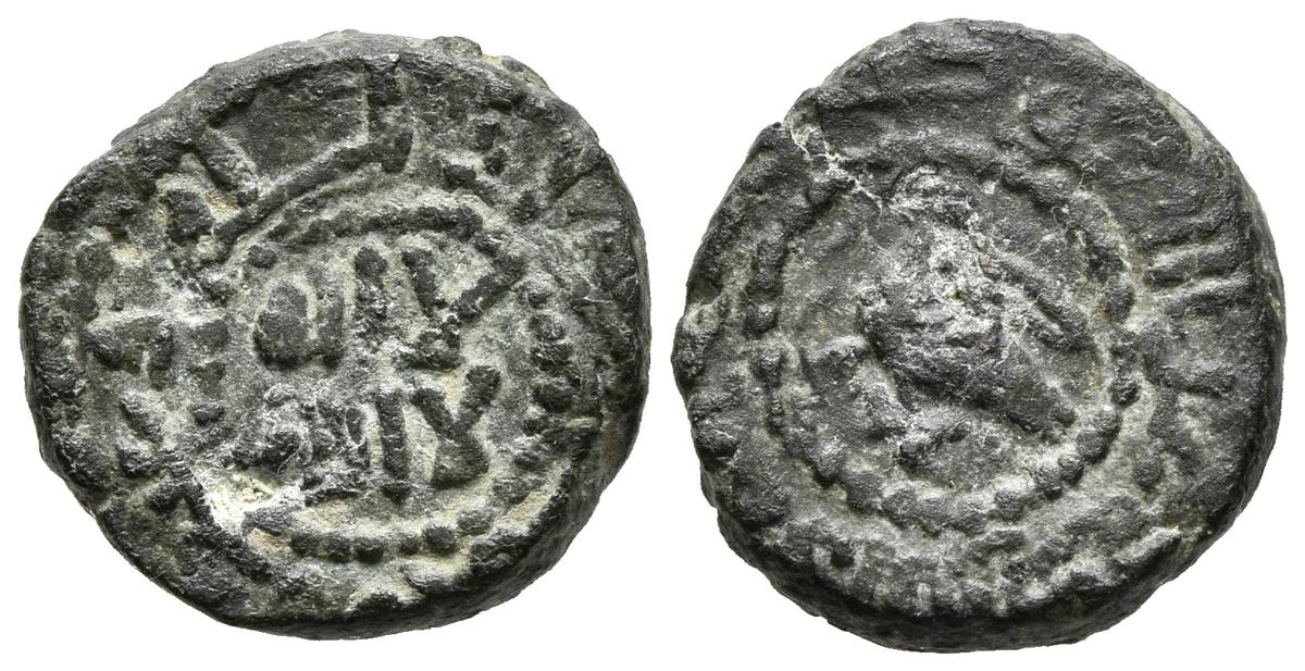 PERIODO DE LOS GOBERNADORES. Felús. 92 H. Al-Andalus. A/ Aguila a izquierda con las alas abiertas llevando una serpiente en su pico. Frochoso XIV-b. Ae. 4,65g. Buen ejemplar para este tipo. MBC+. Muy rara.