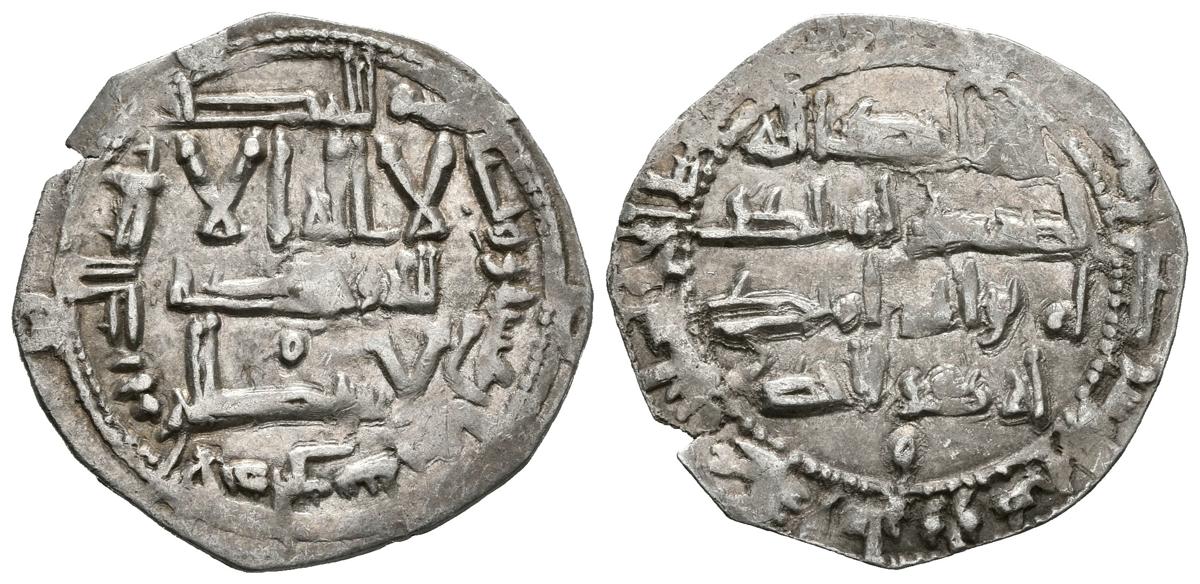 EMIRATO INDEPENDIENTE. Abd Al-Rahman II. Dirham. 218 H. Al-Andalus. Vives 151; Miles 109f. Ar. 2,23g. Márgenes recortados. MBC.