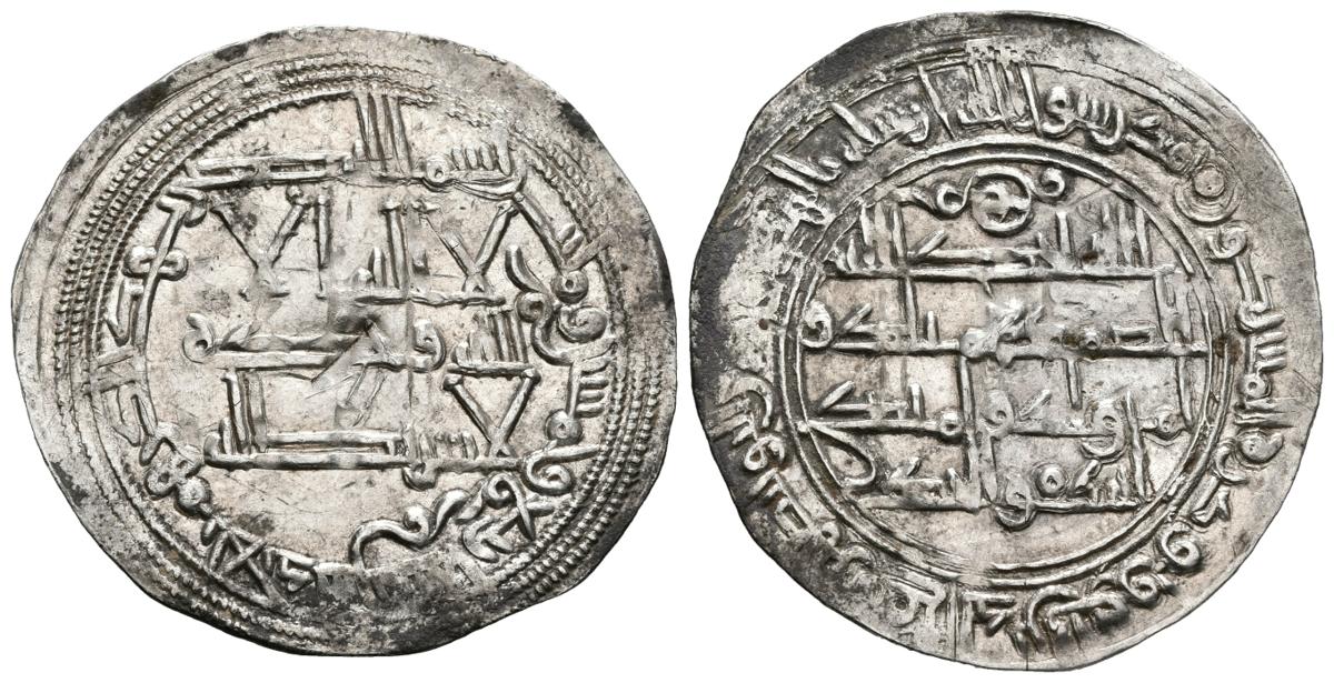 EMIRATO INDEPENDIENTE. Muhammad I. Dirham. 254 H. Al-Andalus. Vives 268 var; Miles 146 var. Ar. 2,54g. Leve golpe en el centro. Buen ejemplar. EBC.