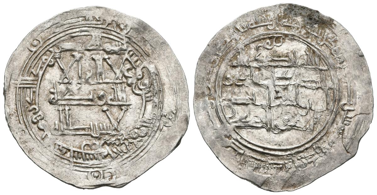 EMIRATO INDEPENDIENTE. Muhammad I. Dirham. 264 H. Al-Andalus. Citando el nombre del grabador Ibn Fahad fuera de la gráfila en la IA. Vives 295; Miles 157h var. Ar. 2,69g. EBC-/MBC+. Muy rara.