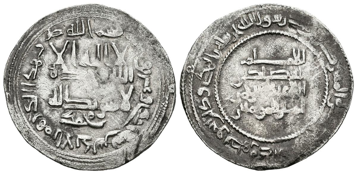 CALIFATO DE CORDOBA. Abd Al-Rahman III. Dirham. 321H. Al-Andalus. Citando a Muhammad en la IA. Vives 378; Miles 200b; Album 350.3 (RR). Ar. 2,43g. MBC. Escasa.