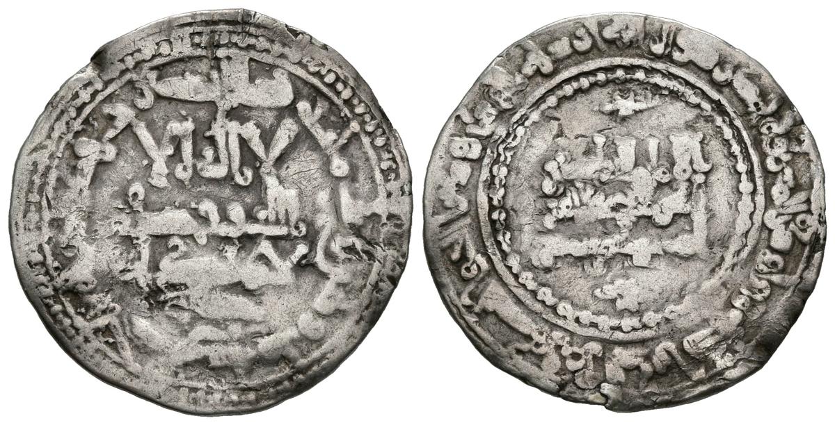 CALIFATO DE CORDOBA. Abd Al-Rahman III. Dirham. 336 H. Al-Andalus. Citando Abd Allah en la IA. Vives 413. Ar. 3,00g. MBC-. Escasa.