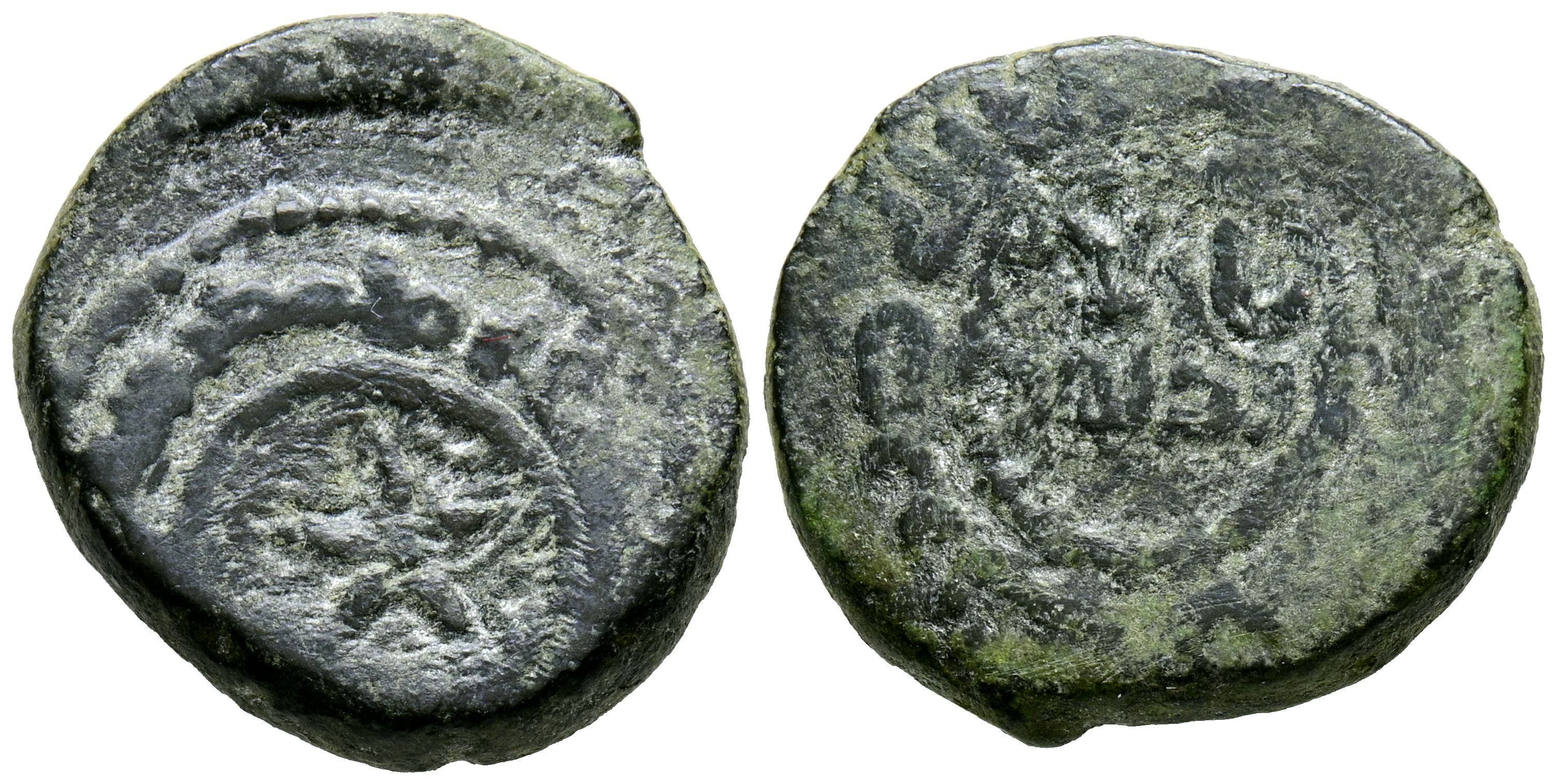 EMIRATO DEPENDIENTE DE CÓRDOBA, PERIODO DE GOBERNADORES. Anónimo. Felús. (Ae. 7,22g/21mm). al-Ándalus / الاندلس. (Vives 44; Frochoso XVII-b). Anv: Estrella de 5 puntas dentro de gráfila circular, alrededor Profesión de Fé,'Sahada'. Rev: ندلس/ الا, dentro de gráfila circular, alrededor 'Basmala'. MBC-.
