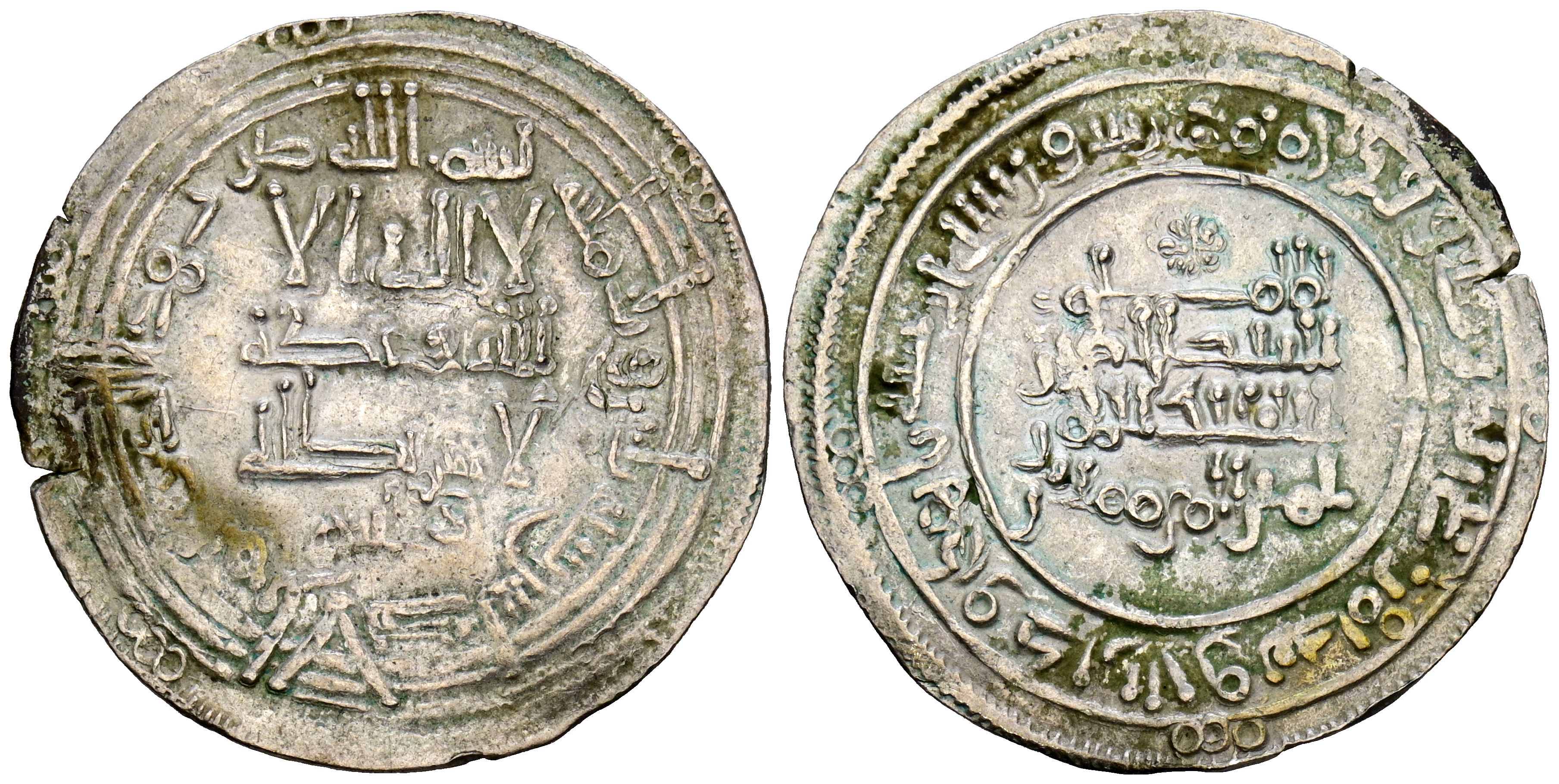 CALIFATO DE CÓRDOBA. 'Abd al-Rahman III. Dirham. (Ar. 2,34g/25mm). 330H. al-Ándalus / الاندلس. (Vives 396; Frochoso 330.8). Citando a Qāsim / قاسم en IA. MBC. Bonito ejemplar.