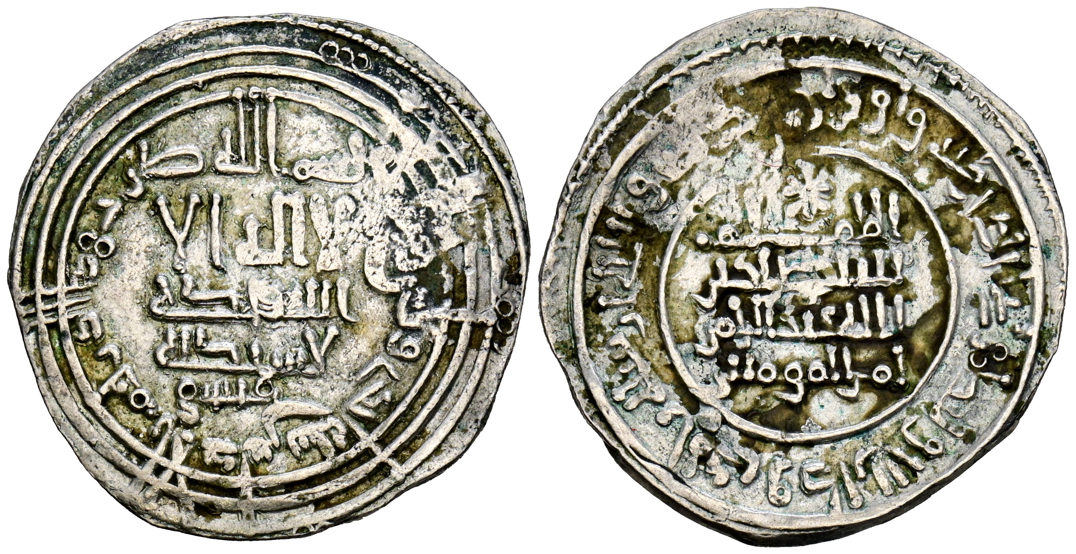 CALIFATO DE CÓRDOBA. 'Abd al-Rahman III. Dirham. (Ar. 3,89g/25mm). 331H. al-Ándalus / الاندلس. (Vives 397; Frochoso 331.8). Citando a Qāsim / قاسم en IA. MBC.