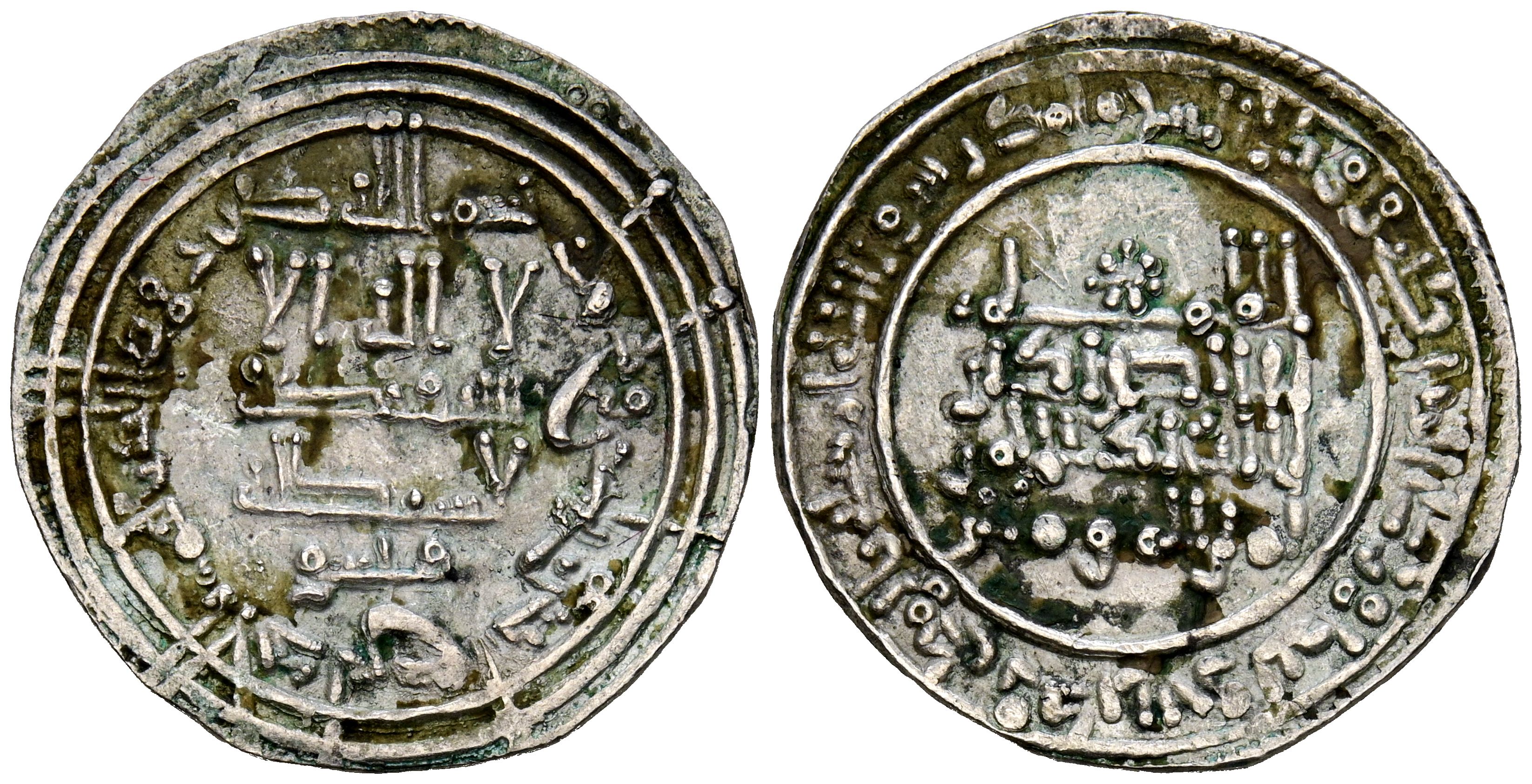 CALIFATO DE CÓRDOBA. 'Abd al-Rahman III. Dirham. (Ar. 3,07g/23mm). 332H. al-Ándalus / الاندلس. (Vives 398; Frochoso 331.8). Citando a Qāsim / قاسم en IA. MBC.