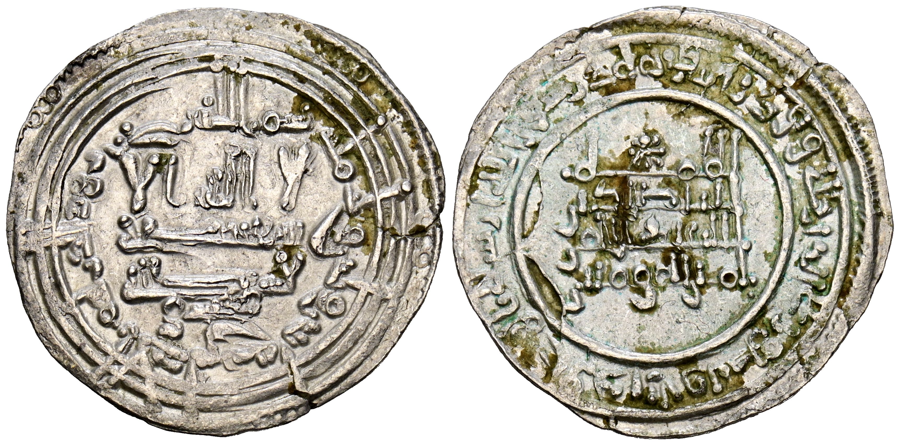 CALIFATO DE CÓRDOBA. 'Abd al-Rahman III. Dirham. (Ar. 2,65g/24mm). 332H. al-Ándalus / الاندلس. (Vives 398; Frochoso 332.11). Citando a Qāsim / قاسم en IA. EBC-.