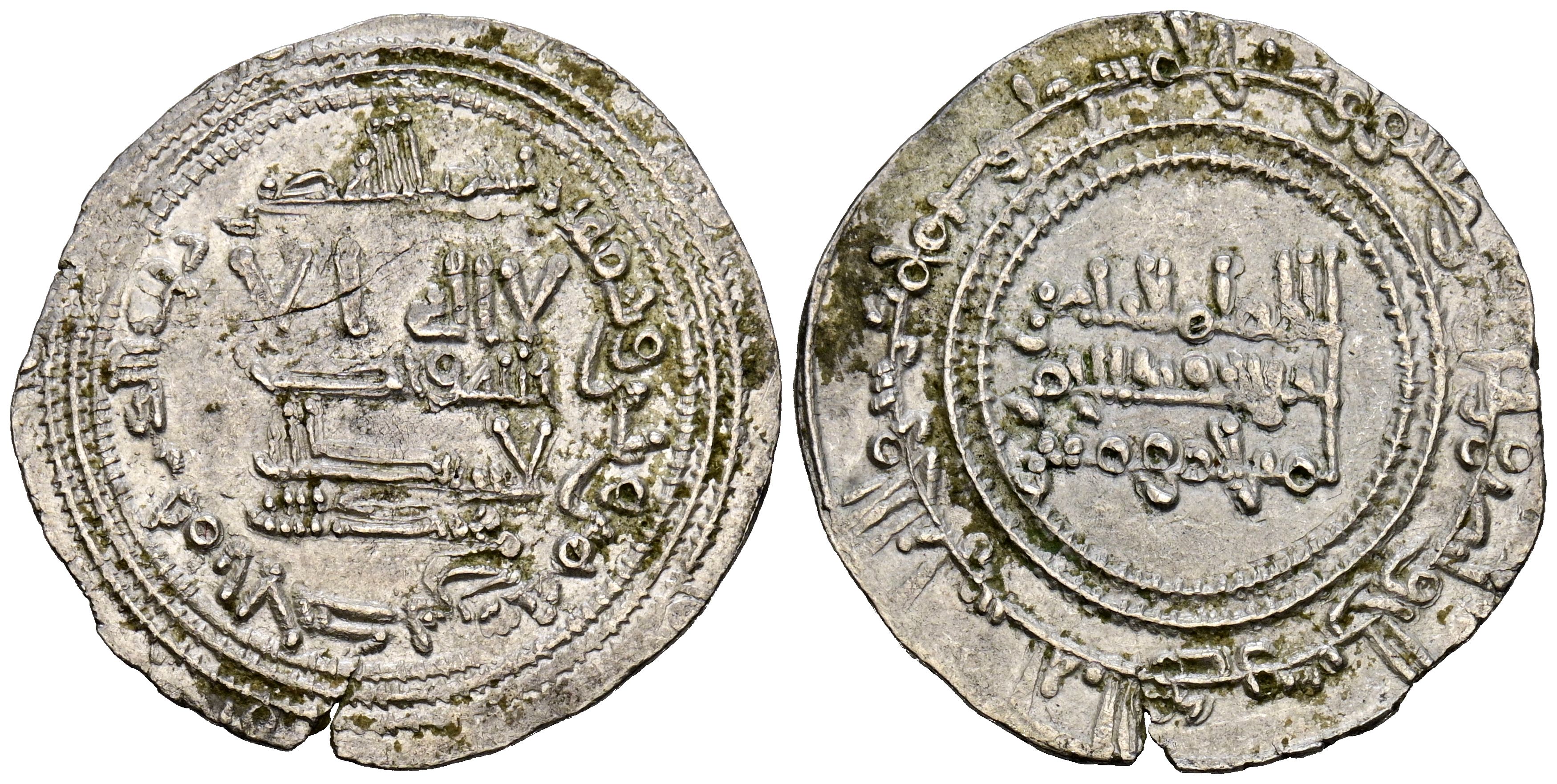 CALIFATO DE CÓRDOBA. 'Abd al-Rahman III. Dirham. (Ar. 3,08g/25mm). 335H. al-Ándalus / الاندلس. (Vives 411; Frochoso 335.17). Citando a ‘Abd Allāh / عبداللة en IA. MBC+. Bonito ejemplar.