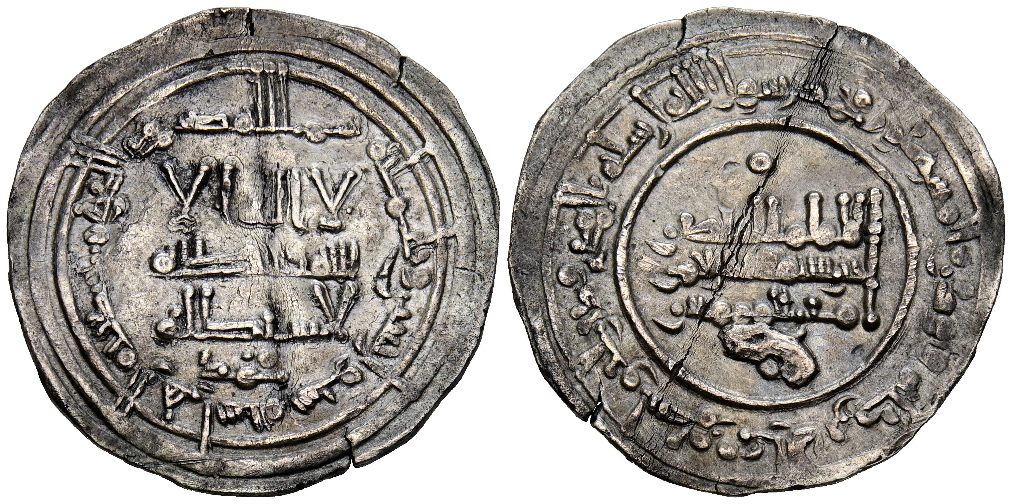 CALIFATO DE CÓRDOBA. 'Abd al-Rahman III. Dirham. (Ar. 2,74g/24mm). 340H. Madinat al-Zahra / مدينة الزهرا. (Vives 421; Frochoso 340.5). Citando a Mohammad / محمد en IA. MBC. Signos de doblez y pequeño exceso de metal en reverso.