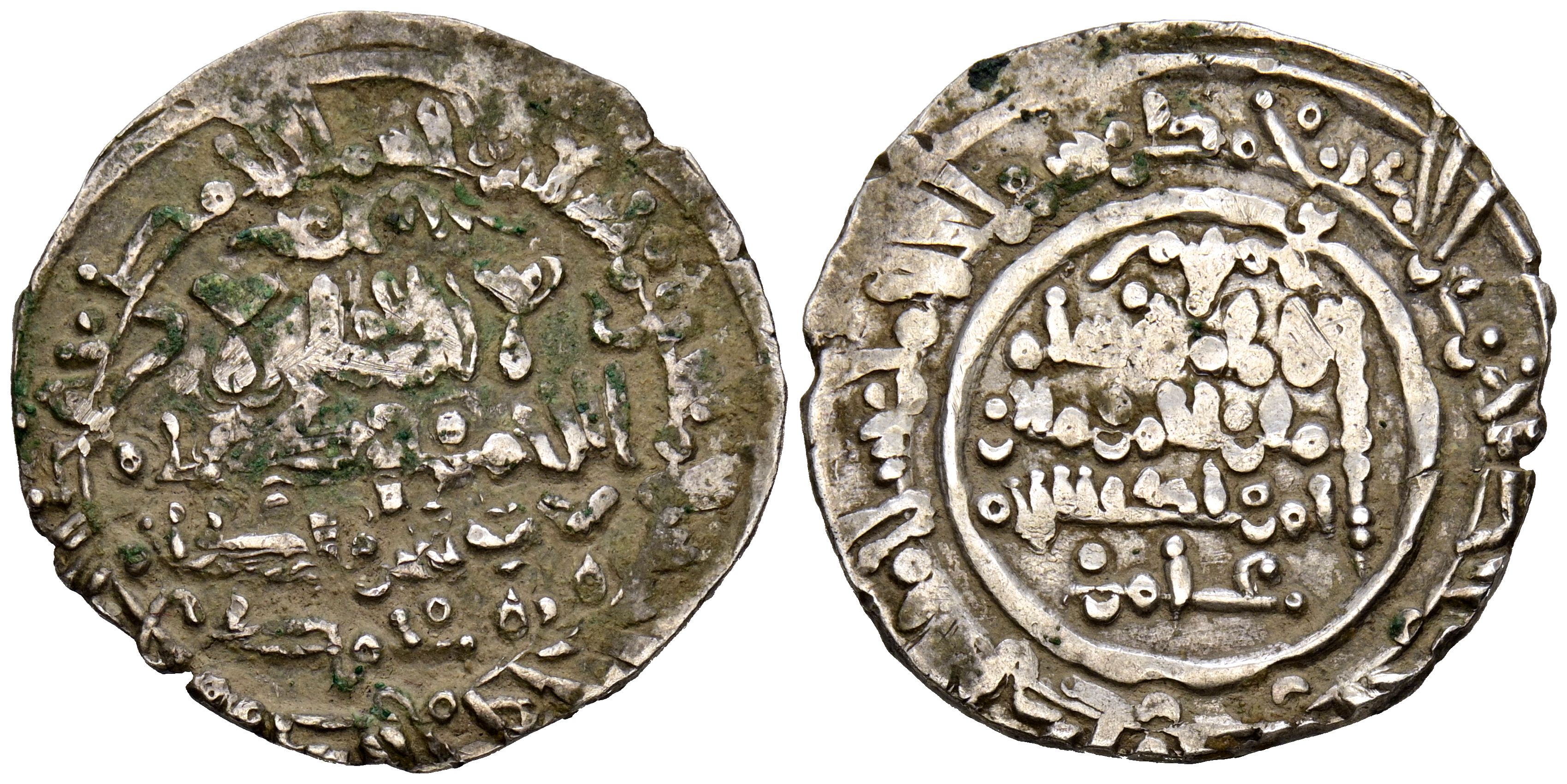 CALIFATO DE CORDOBA, Hisham II. Dirham. (Ar. 3,83g/24mm). 392H. Madinat Fas (Fez) / مدينة فاس. (Vives 628). Citando a Mohammad / محمد en IA. y a ‘Āmir / عامر en IIA. MBC. Bonito y raro ejemplar.