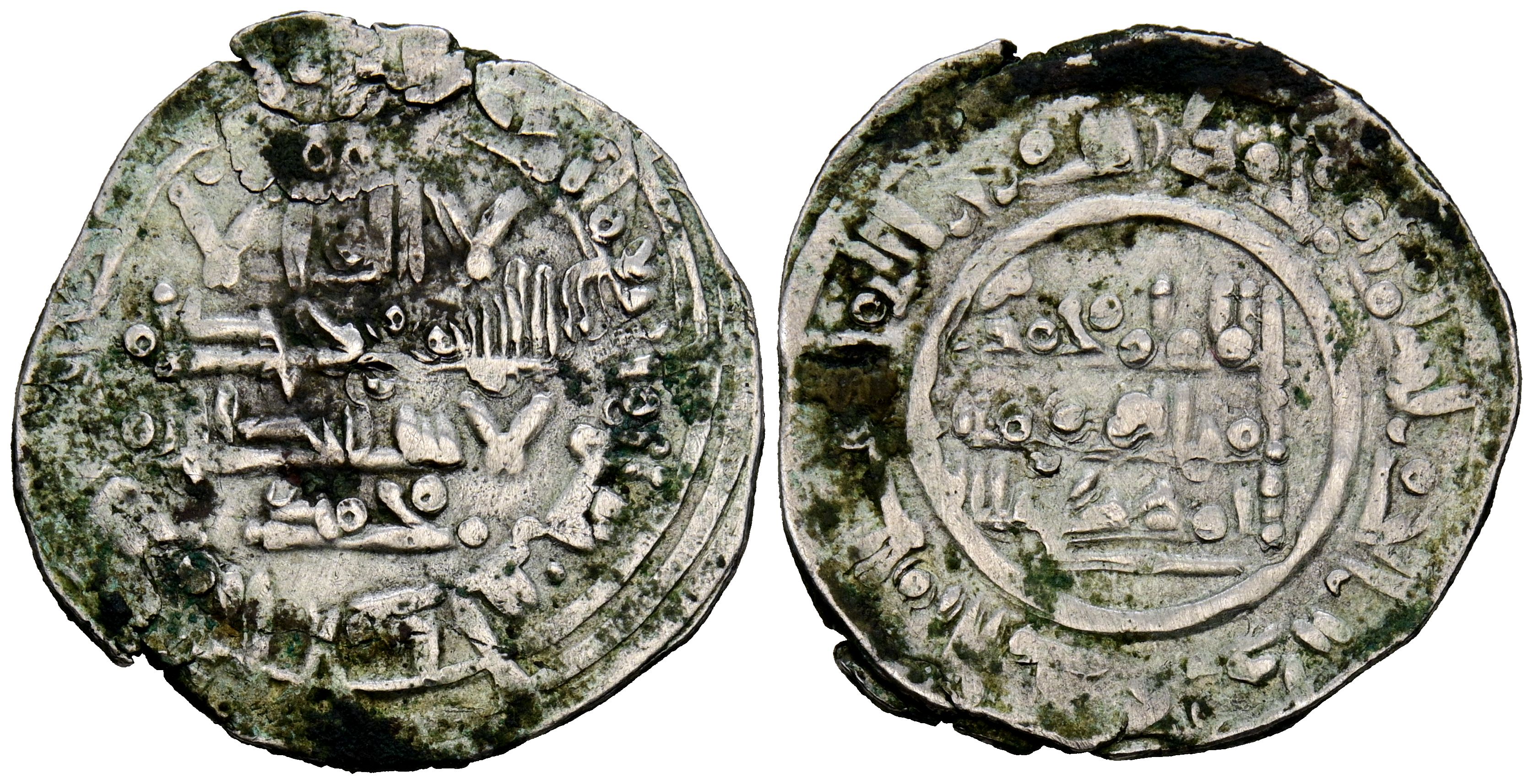 CALIFATO DE CÓRDOBA, Muhammad II. Dirham. (Ar. 3,47g/24mm). 400H. al-Ándalus / الاندلس. (Vives 684; Frochoso 400.157). Citando a Mohammad / محمد en IA. MBC-. Anverso desplazado.
