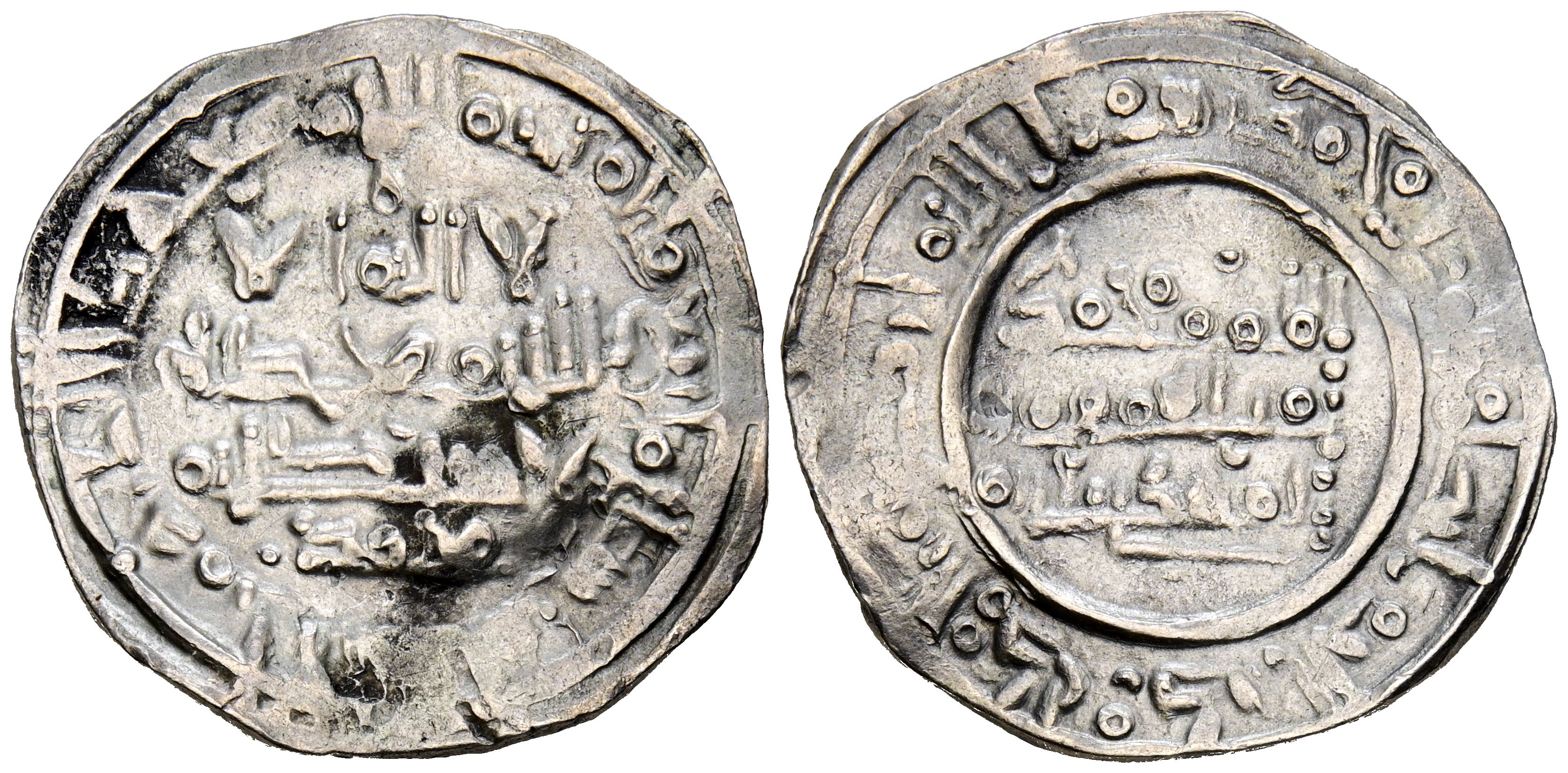 CALIFATO DE CÓRDOBA, Muhammad II. Dirham. (Ar. 3,35g/24mm). 400H. al-Ándalus / الاندلس. (Vives 684; Frochoso 400.209). Citando a Mohammad / محمد en IA. MBC. Alabeada.