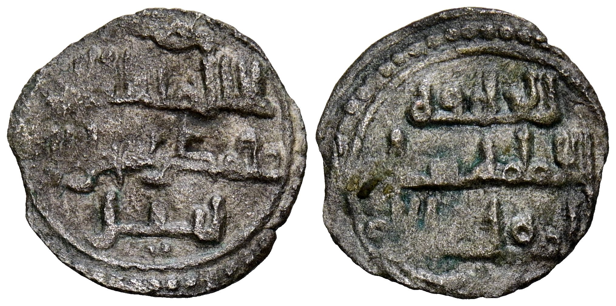 TAIFAS DEL CALIFATO, TORTOSA ('Āmiries y Hūdies). Nabīl al-Jalīfah (450-487H?) Dirham. (Ar. 0,61g/14mm). S/D. (Vives 1293; Prieto 197; Cru C.G. 1542). Anv: 'Sahada' en dos líneas, debajo: نبيل (Nabīl). Rev: Reconocimiento al emir Hisham, arriba: الخليـفـة (al-Jalīfah). MBC. Muy pocos ejemplares conocidos. Rarísima.