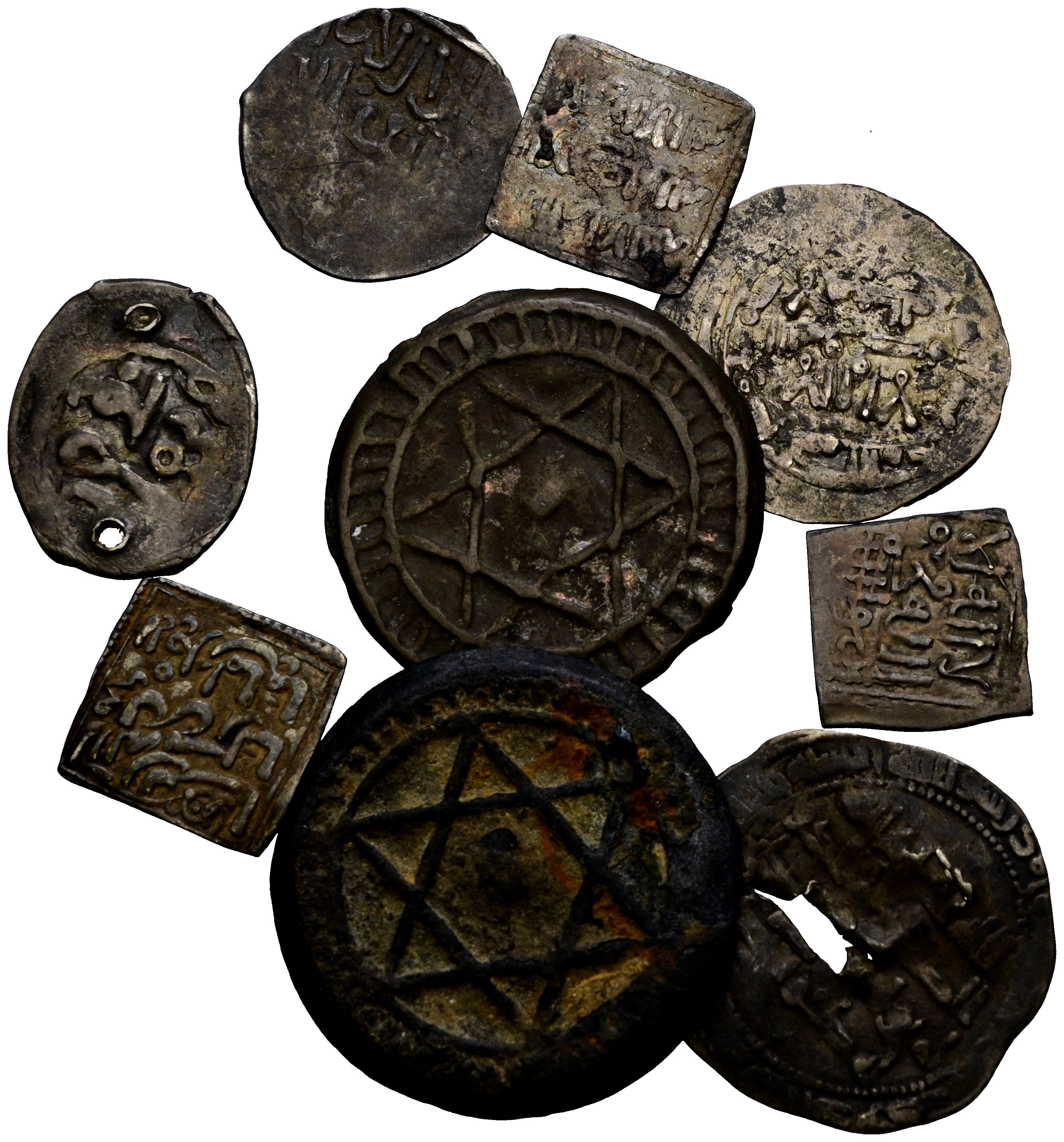 Interesante y variado conjunto formado por 9 monedas correspondientes al emirato y califato de Córdoba, califato Almohade, reino de Granada y reino de Marruecos. Diferentes metales, fechas, cecas y estados de conservación. A EXAMINAR.