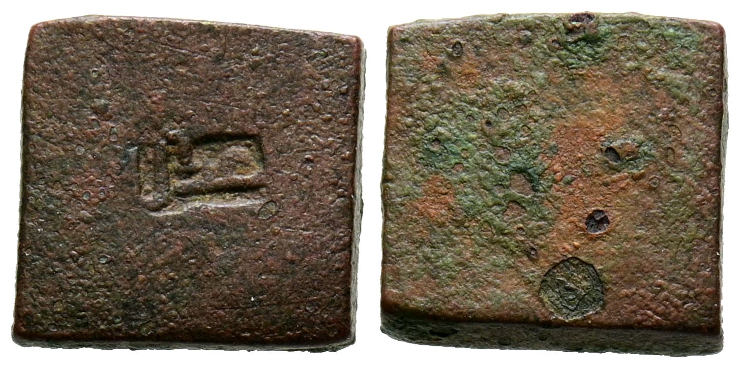Ponderal de 1/2 Dinar, Anónimo. (Ae. 1,93g/10mm). Sin fecha. Forma cuadrada con epigrafía cúfica: عدل : ''Justo''. (Tonegawa Tipo-D64var). MBC+.