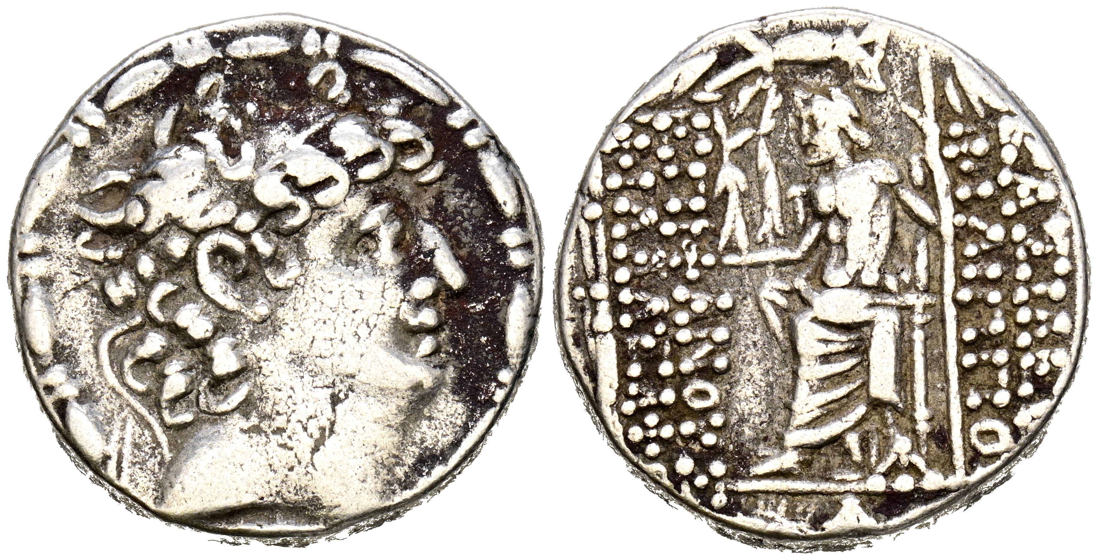 REINO SELEUCIDA, Filipo I Filadelfos. Tetradracma. (Ar. 15,06g/26mm). 93-83 a.C. Antioquía. (HGC 9, 1320). Anv: Cabeza laureada de Filipo I a derecha. Rev: Zeus sentado a izquierda portando cetro y Nike con corona de laurel, delante monograma: AP, alrededor leyenda griega: ΒΑΣΙΛΕΩΣ ΦΙΛΙΠΠΟY ΕΠΙΦΑΝΟYΣ ΦΙΛΑΔΕΛΦOY. MBC-.