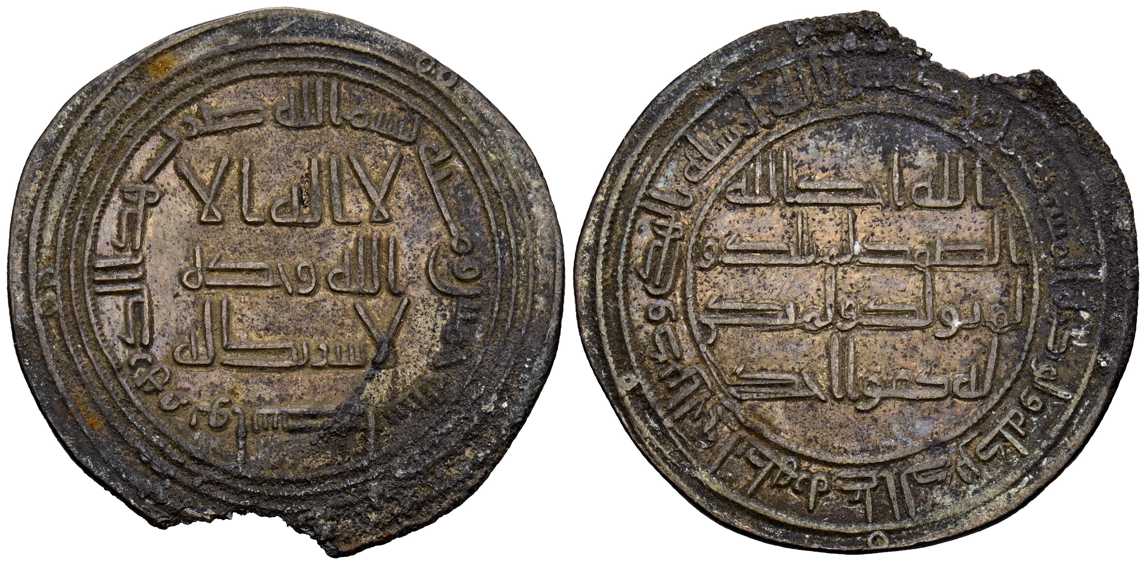 CALIFATO OMEYA DE DAMASCO. Hisham Ibn `Abd Al-Malik. Dirham. (Ar. 2,85g/27mm). 105H. Wasit / واسط. (Álbum 137). MBC-. Depositos y leve falta en cospel sin afectar a las leyendas. Atractivo tono.
