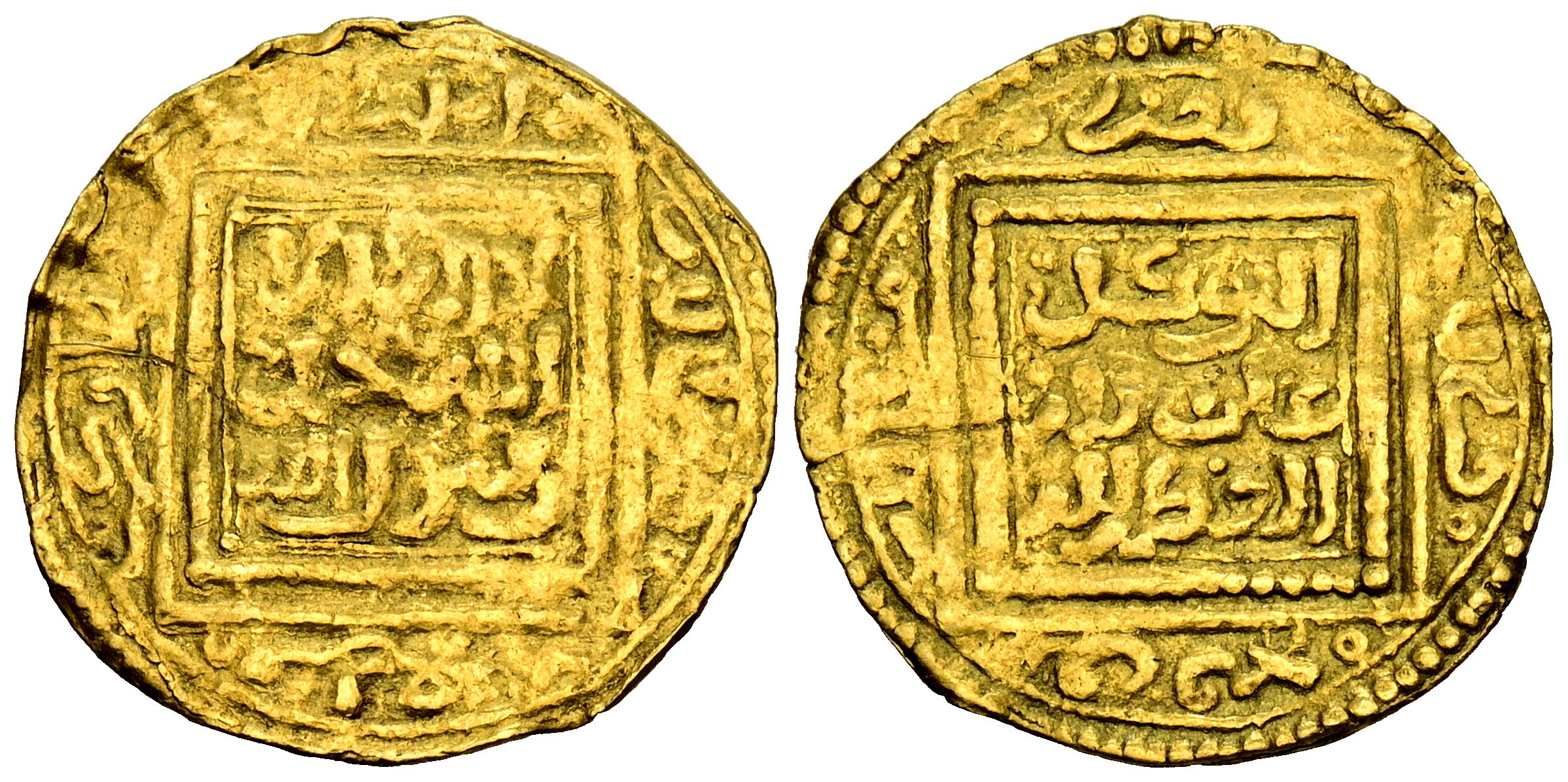 MERINÍES DE MARRUECOS, Anónima, atribuída a Abu Yahya Abu Bakr. 1/4 Dinar. (Au. 1,15g/16mm). S/D. (Álbum 522; Hazard 700, como 1/2 dinar; Lavoix 1036). BC/MBC. Rara.