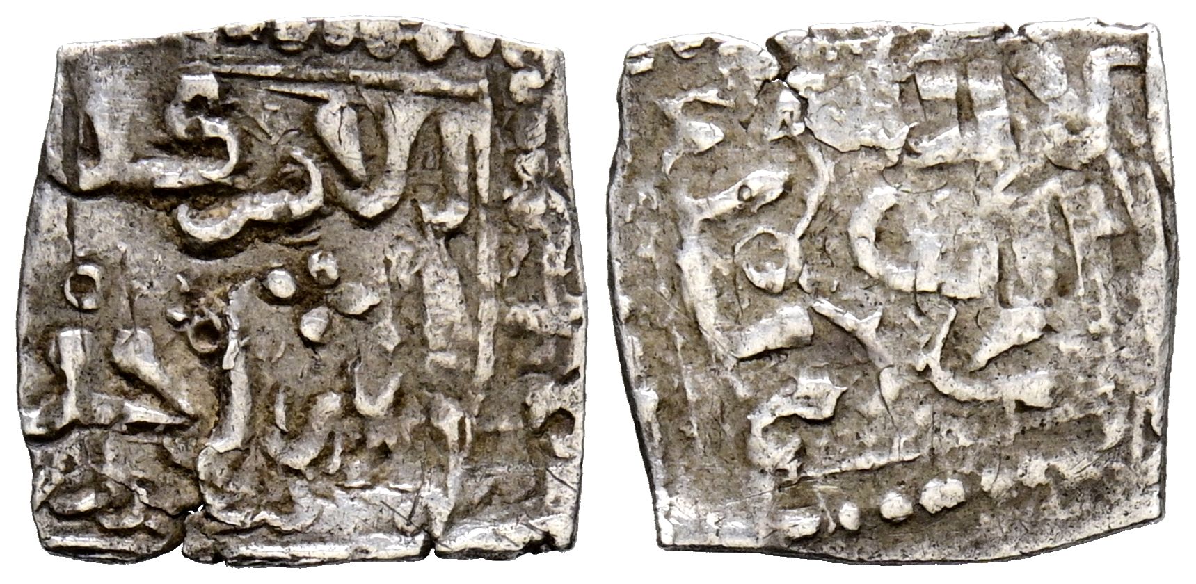 MERINÍES. Anónimo. 1/3 Dirham. (Ar. 0,43g/12mm). ¿Ceuta?. (Hohertz 854b). Anv: لا قوة الا / بالله. Rev: الأمر كله / لله وحده / سبتة. MBC-. Rara.