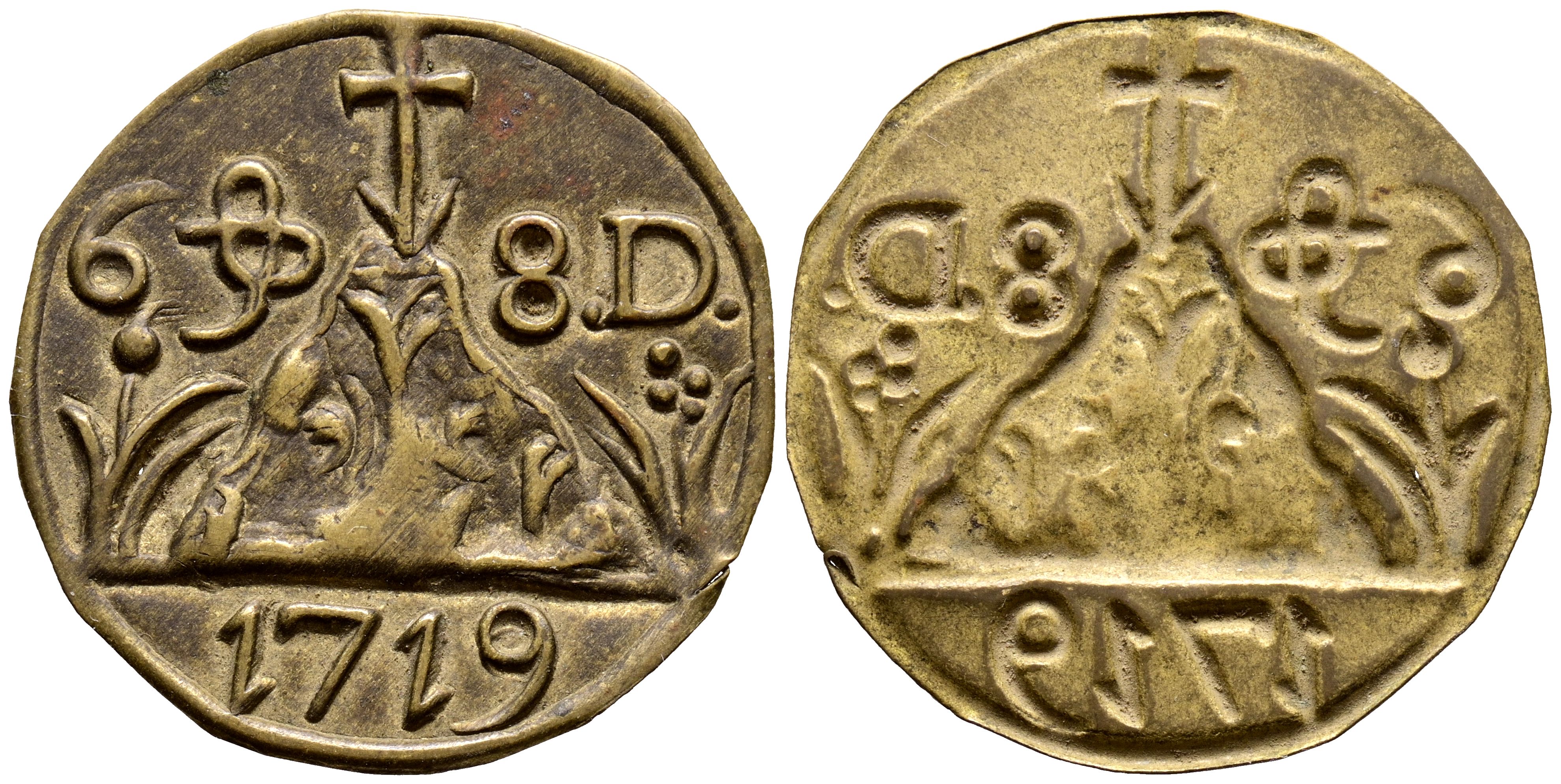 OLOT. Pellofa. (Latón. 1,14g/28mm). Valor 6 Sou-8D. 1719. (Cru.L. 1908). EBC.