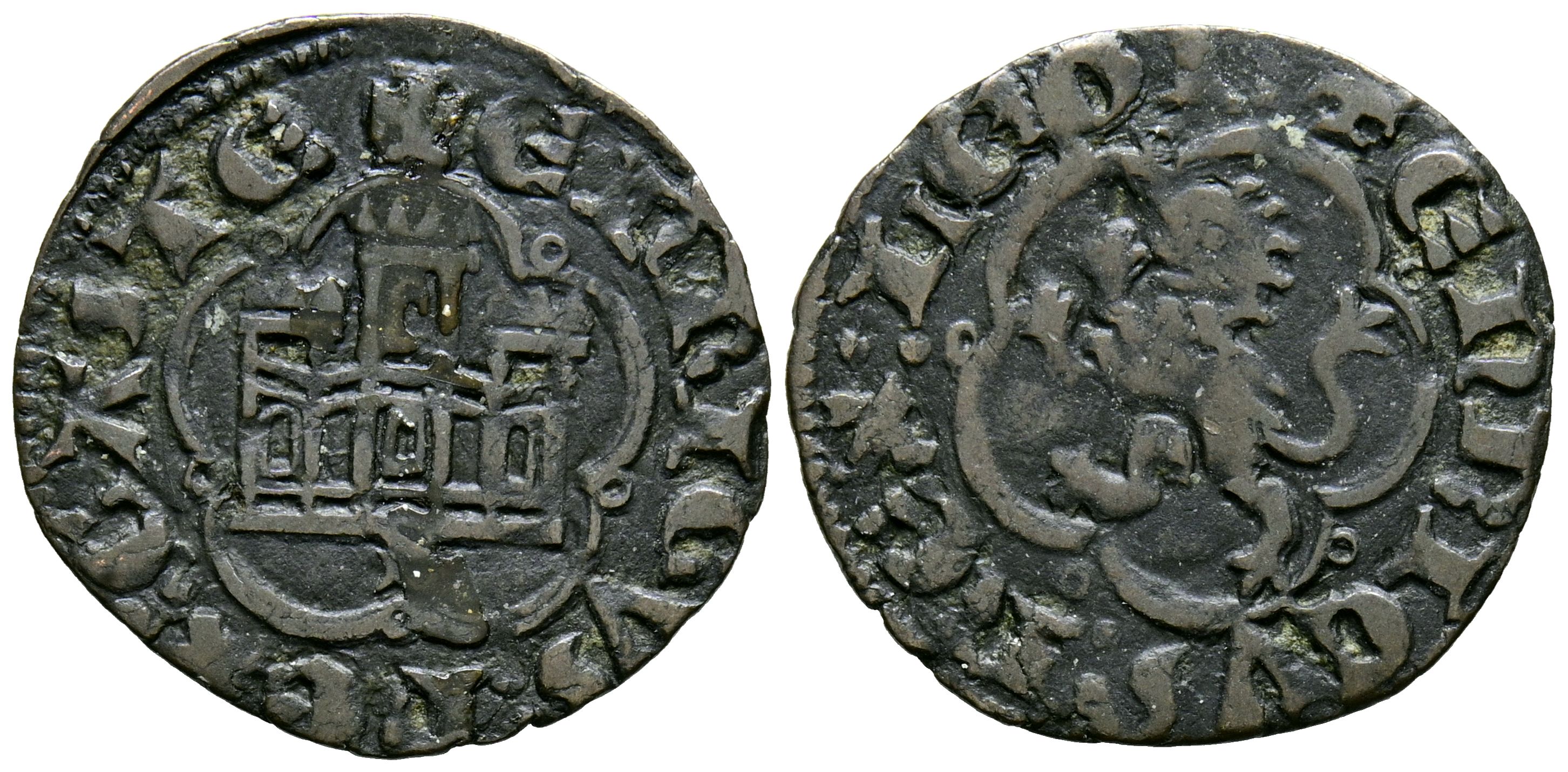ENRIQUE III (1390-1406). 1/2 Blanca. (Ae. 1,26g/20mm). Sevilla. (Imperatrix E3:4.2; FAB-607). Anv: Castillo, debajo S, dentro de gráfila lobular, alrededor leyenda: ENRICVS REX CASTE. Rev: León a izquierda dentro de gráfila lobular, alrededor leyenda: ENRICVS REX LEGIO. MBC.