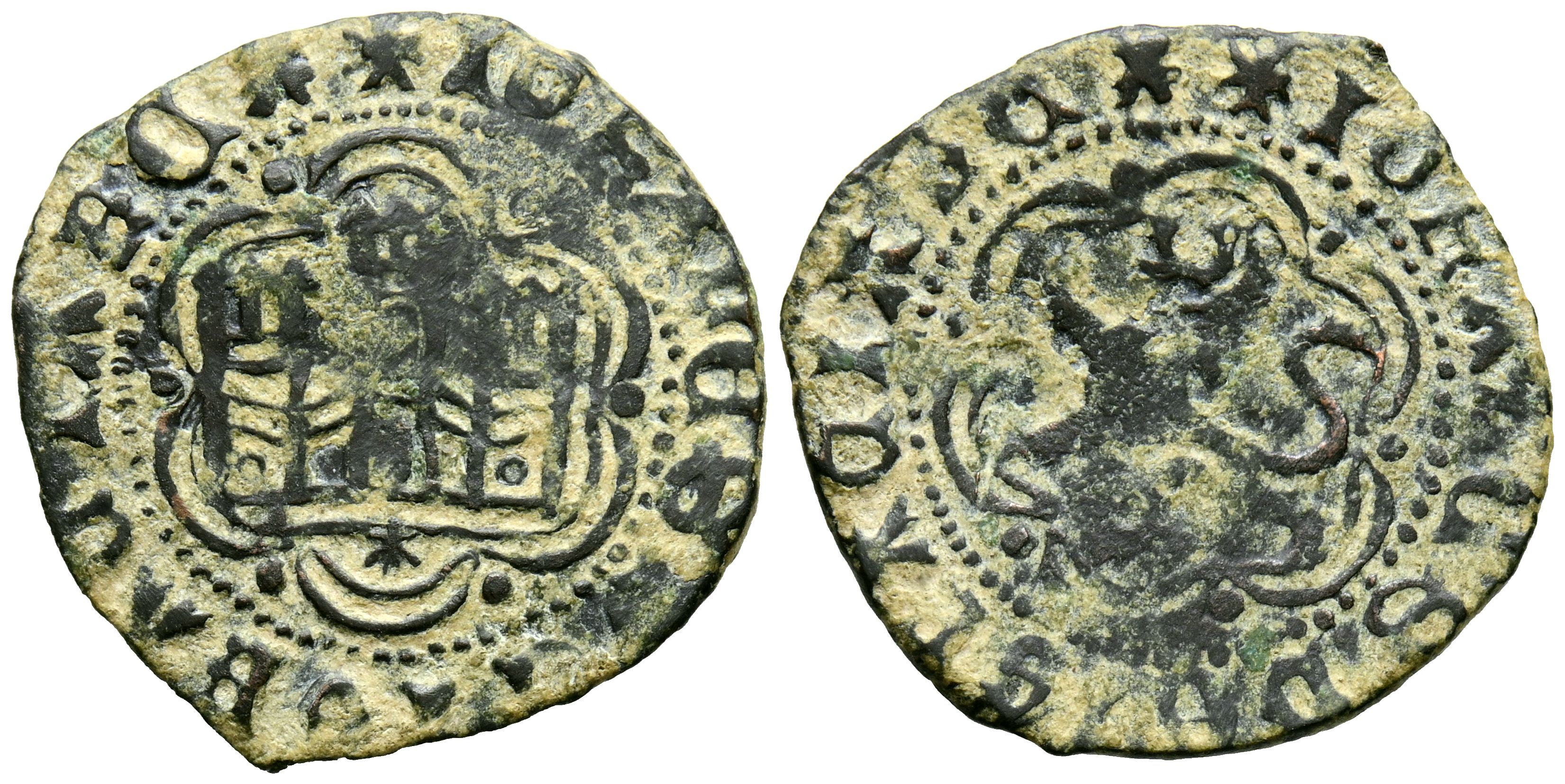JUAN II (1406-1454). Blanca. (Ve. 2,42g/24mm). Coruña. (Imperatrix J2:1.43; FAB-626). Anv: Castillo dentro de gráfila lobular, debajo venera, alrededor leyenda: IOHANES DEI GRACIA REX. Rev: León rampante a izquierda dentro de gráfila lobular, alrededor leyenda: IOHANES DEI GRACIA REX. MBC.