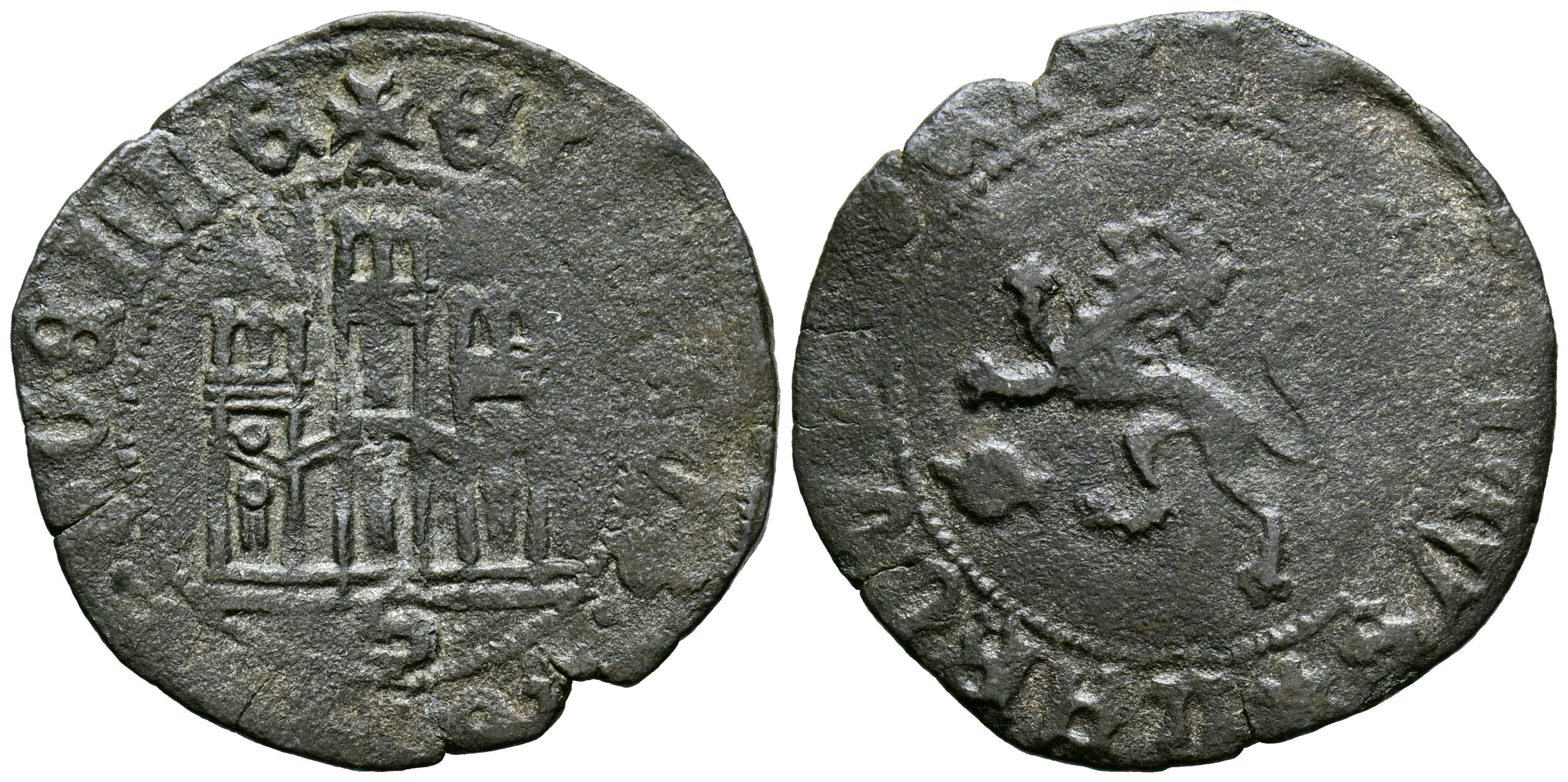 ENRIQUE IV (1454-1474). Maravedí. (Ve. 2,70g/25mm). Sevilla. (Imperatrix E4:20.81; FAB-806.1). Anv: Castillo, debajo: S, todo dentro de gráfila circular, alrededor leyenda: ENRICVS REX CASTELLE. Rev: León coronado y rampante a izquierda con granada a sus pies, todo dentro de gráfila circular, alrededor leyenda: ENRICVS CARTVS DEI G. MBC-.