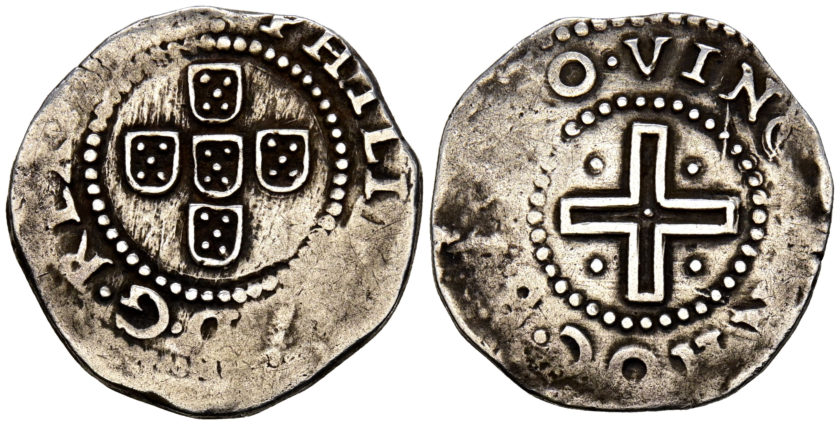 FELIPE III (1598-1621). 1/2 Tostao. (Ar. 4,13g/22mm). S/D. Lisboa. (Vicenti 259). Cruz con puntos. MBC. Escasa.