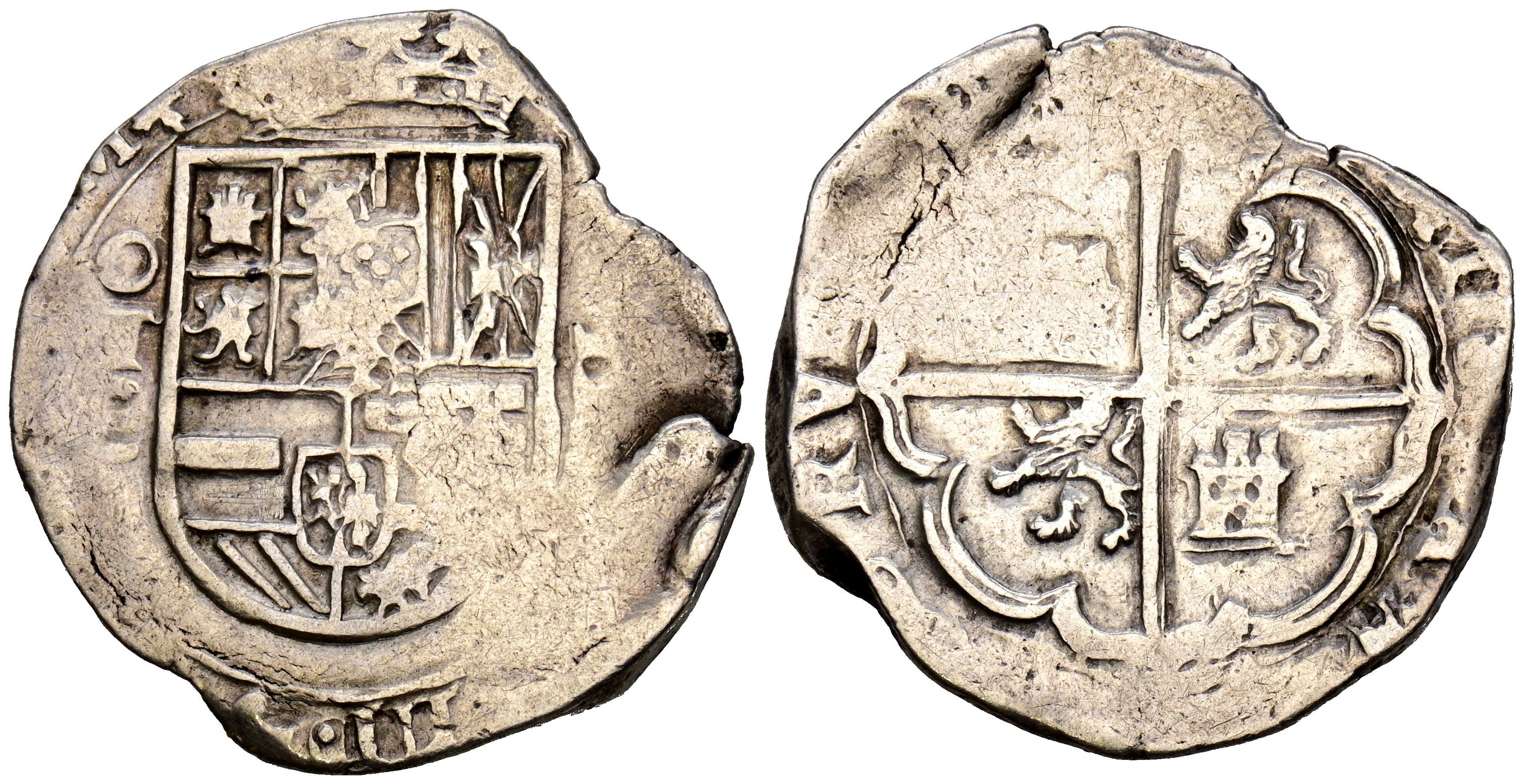 FELIPE III (1598-1621). 2 Reales. (Ar. 6,86g/27mm). Fecha no visible. Toledo C. (Cal-2019-Tipo 136). Tipo OMNIVM. MBC. Escasa.