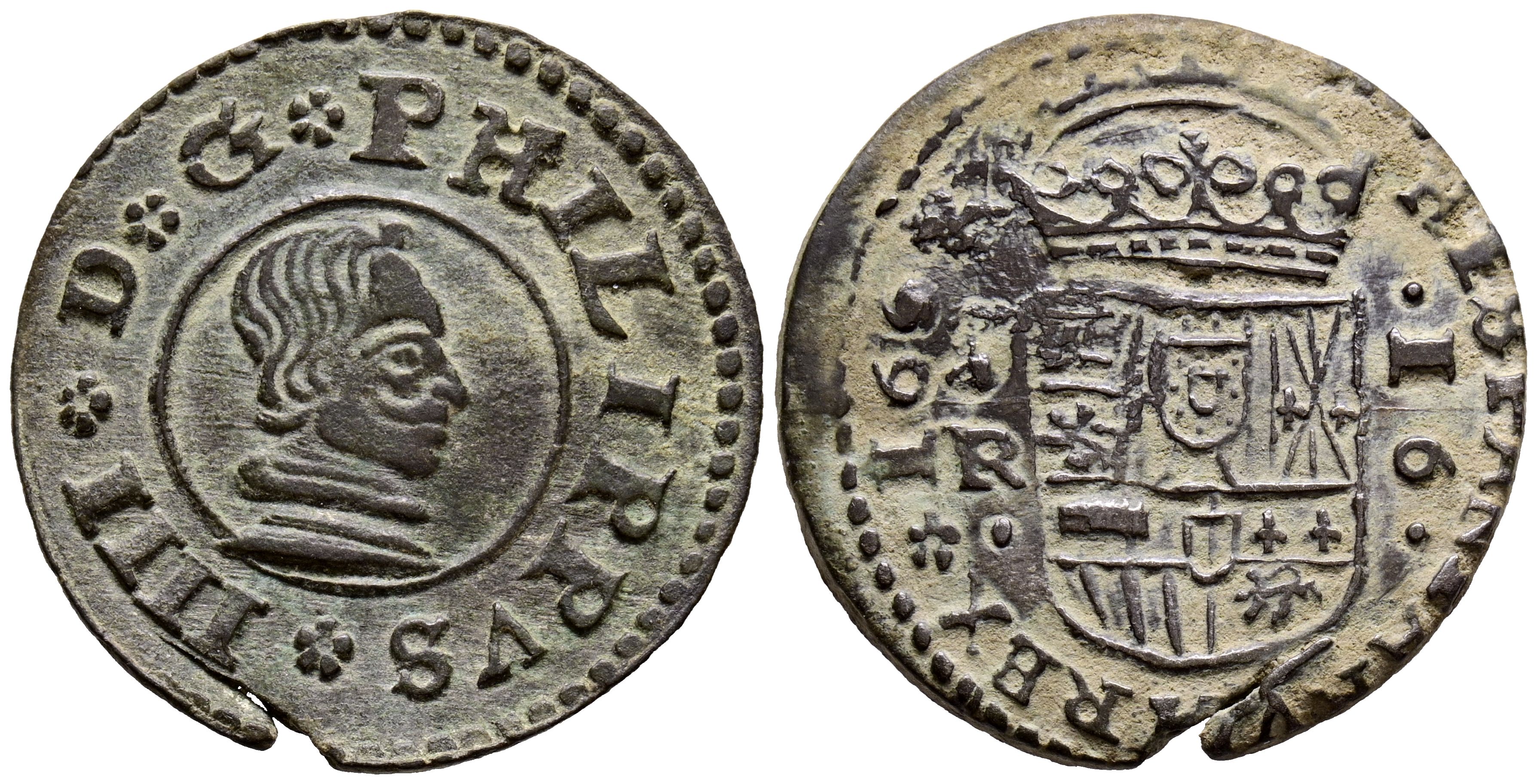 FELIPE IV (1621-1665). 16 Maravedís. (Ve. 4,23g/25mm). 1664. Coruña R. (Cal-2019-455). MBC+/MBC.