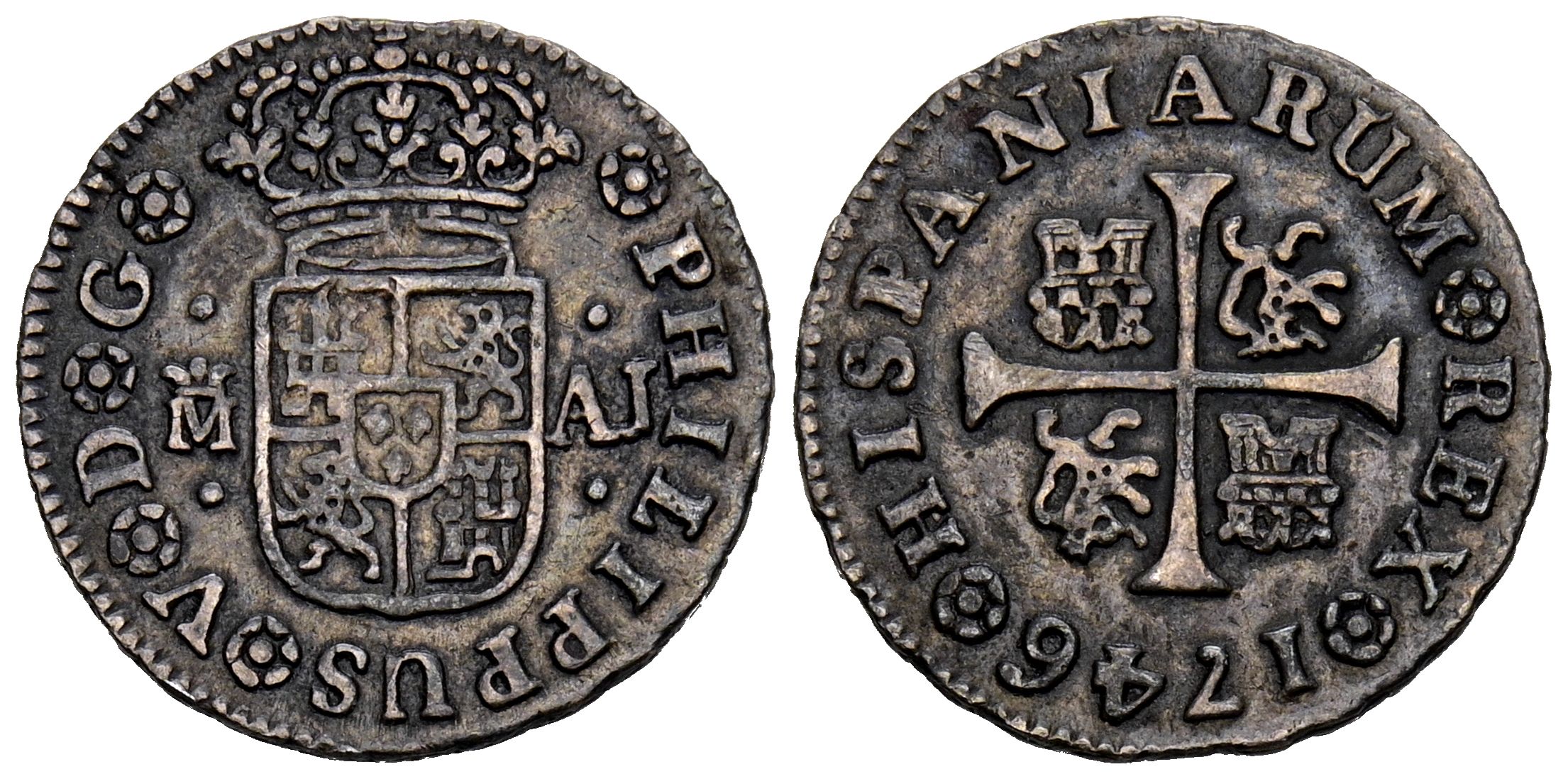 FELIPE V (1700-1746). 1/2 Real. (Ar. 1,43g/16mm). 1746. Madrid AJ. (Cal-2019-188). MBC. Bonita pátina oscura.
