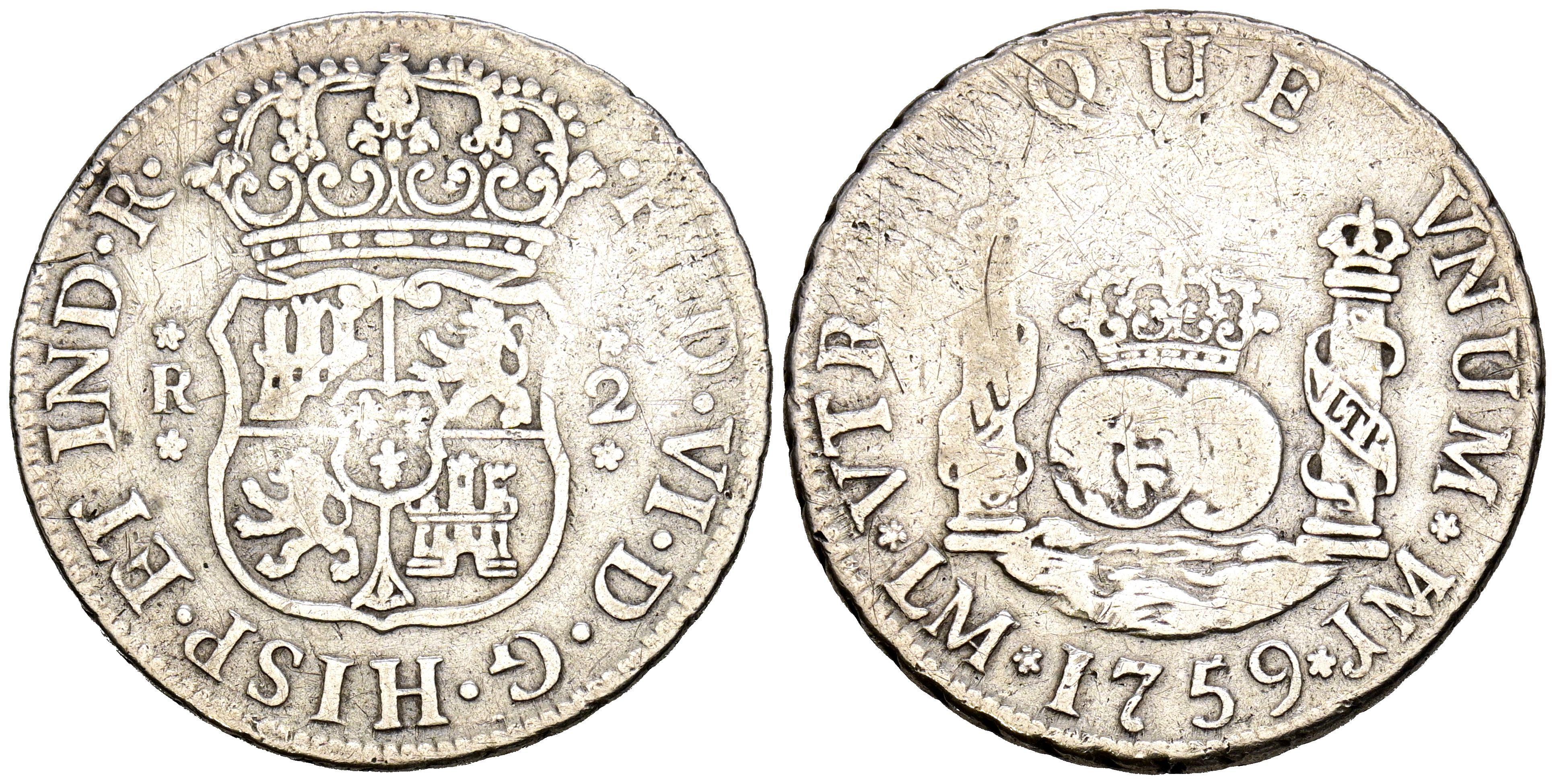 FERNANDO VI (1746-1759). 2 Reales. (Ar. 6,54g/27mm). 1759. Lima JM. (Cal-2019-273). BC+.