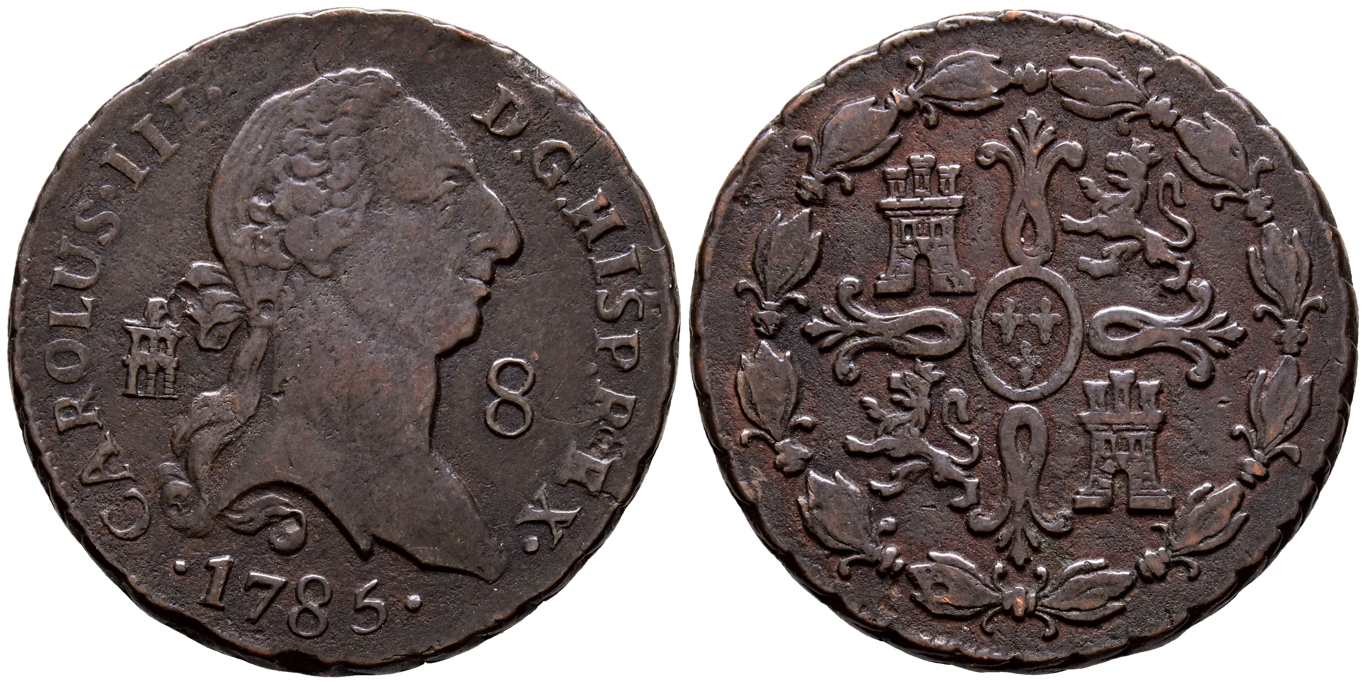 CARLOS III (1759-1788). 8 Maravedís (Ae. 11,66g/30mm). 1785. Segovia. (Cal-2019-81). MBC.
