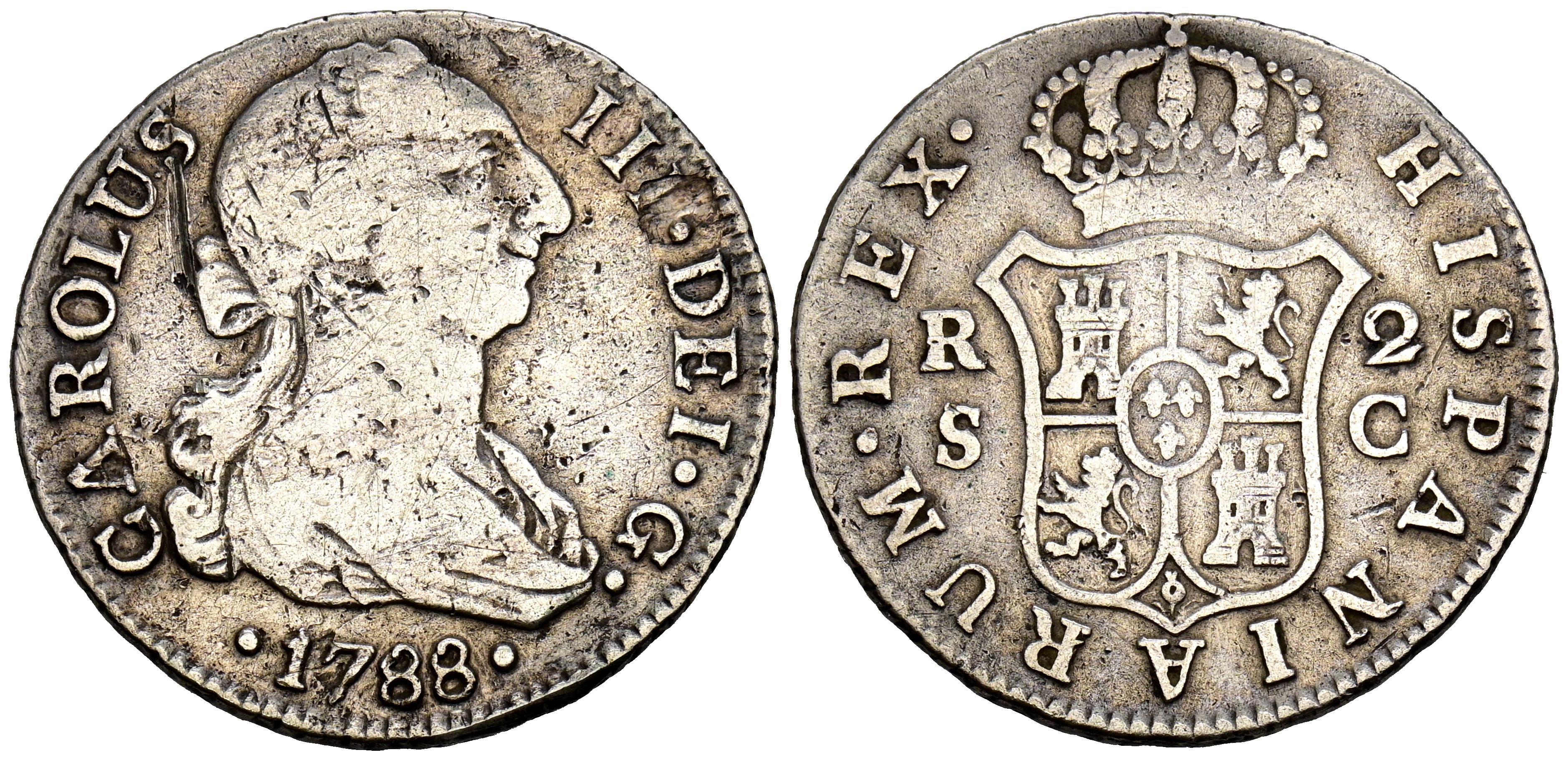 CARLOS III (1759-1788). 2 Reales. (Ar. 5,78g/27mm). 1788. Sevilla C. (Cal-2019-790). BC+.