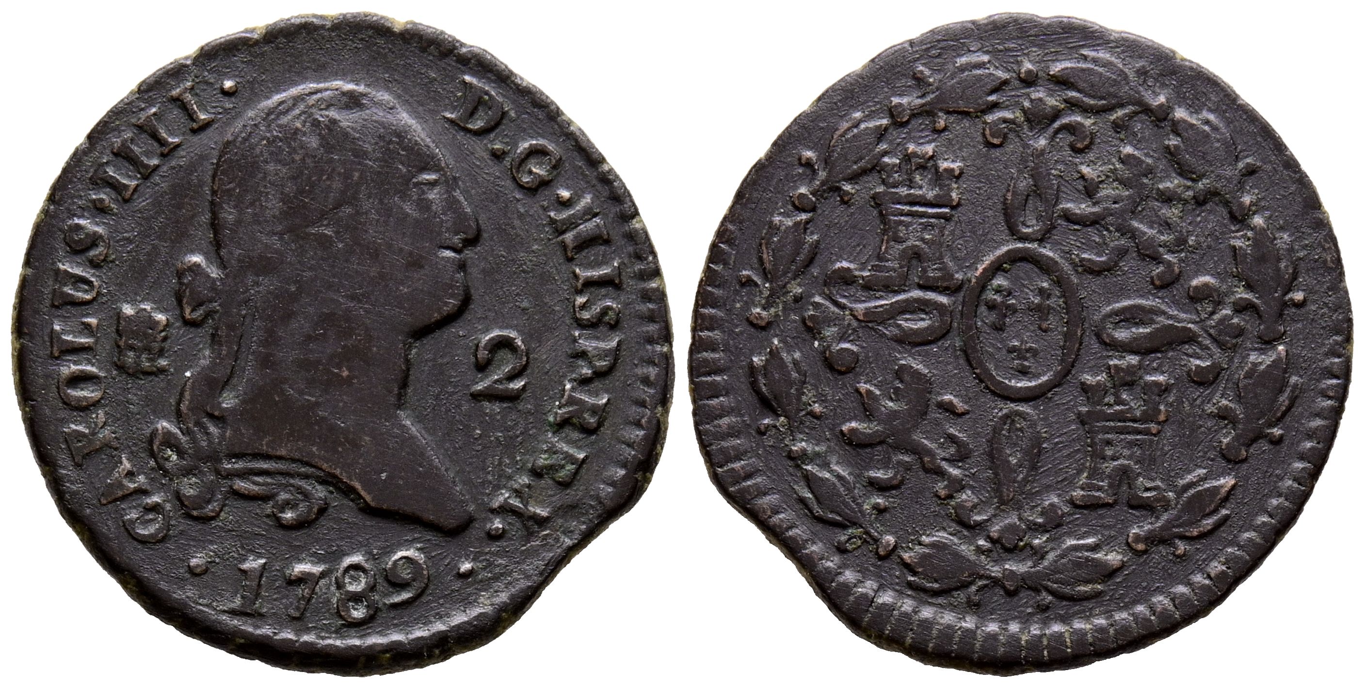 CARLOS IV (1788-1808). 2 Maravedís. (Ae. 3,25g/19mm). 1789. Segovia. (Cal-2019-24). MBC-.
