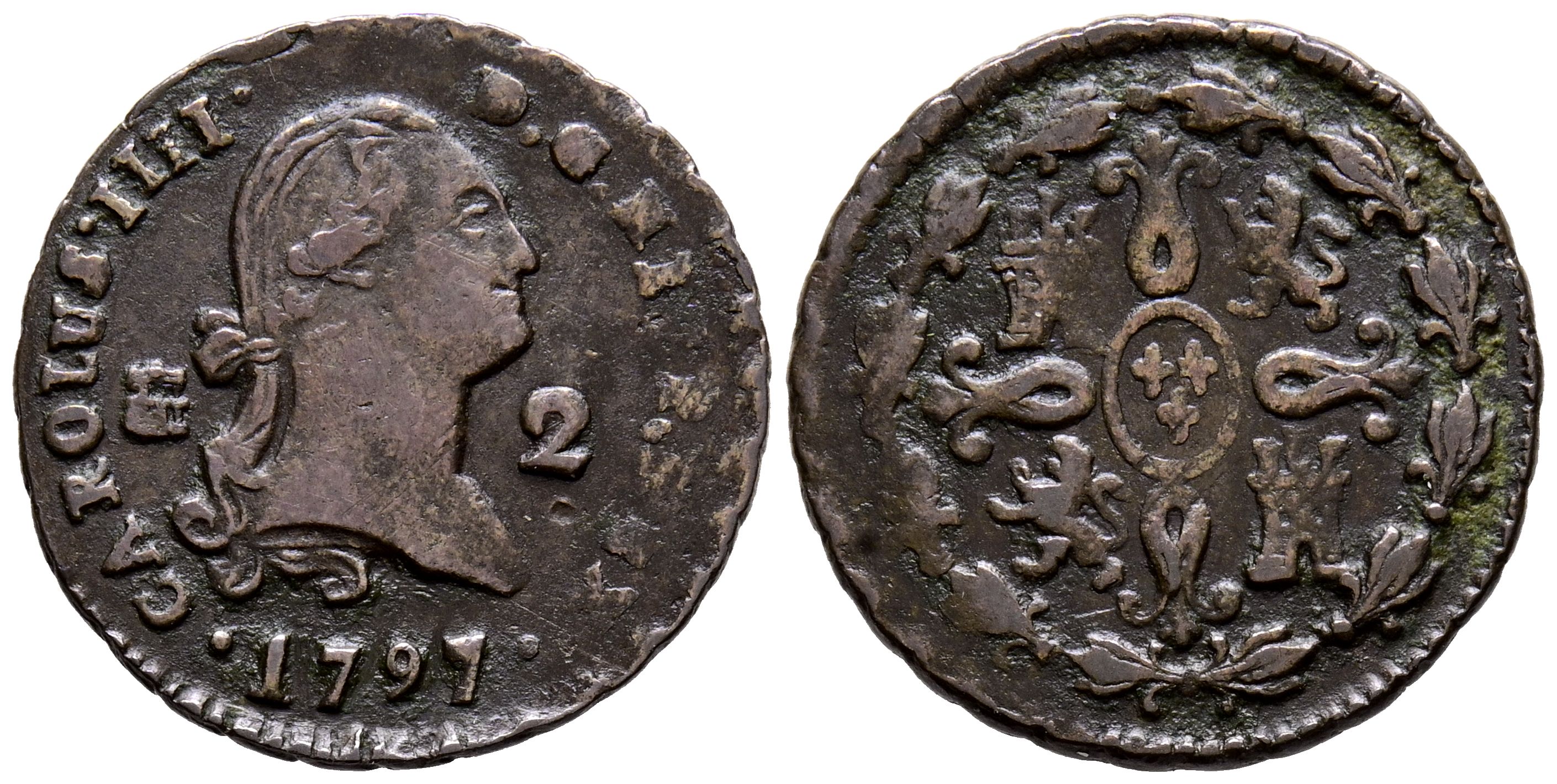 CARLOS IV (1788-1808). 2 Maravedís. (Ae. 2,48g/19mm). 1797. Segovia. (Cal-2019-32). MBC.