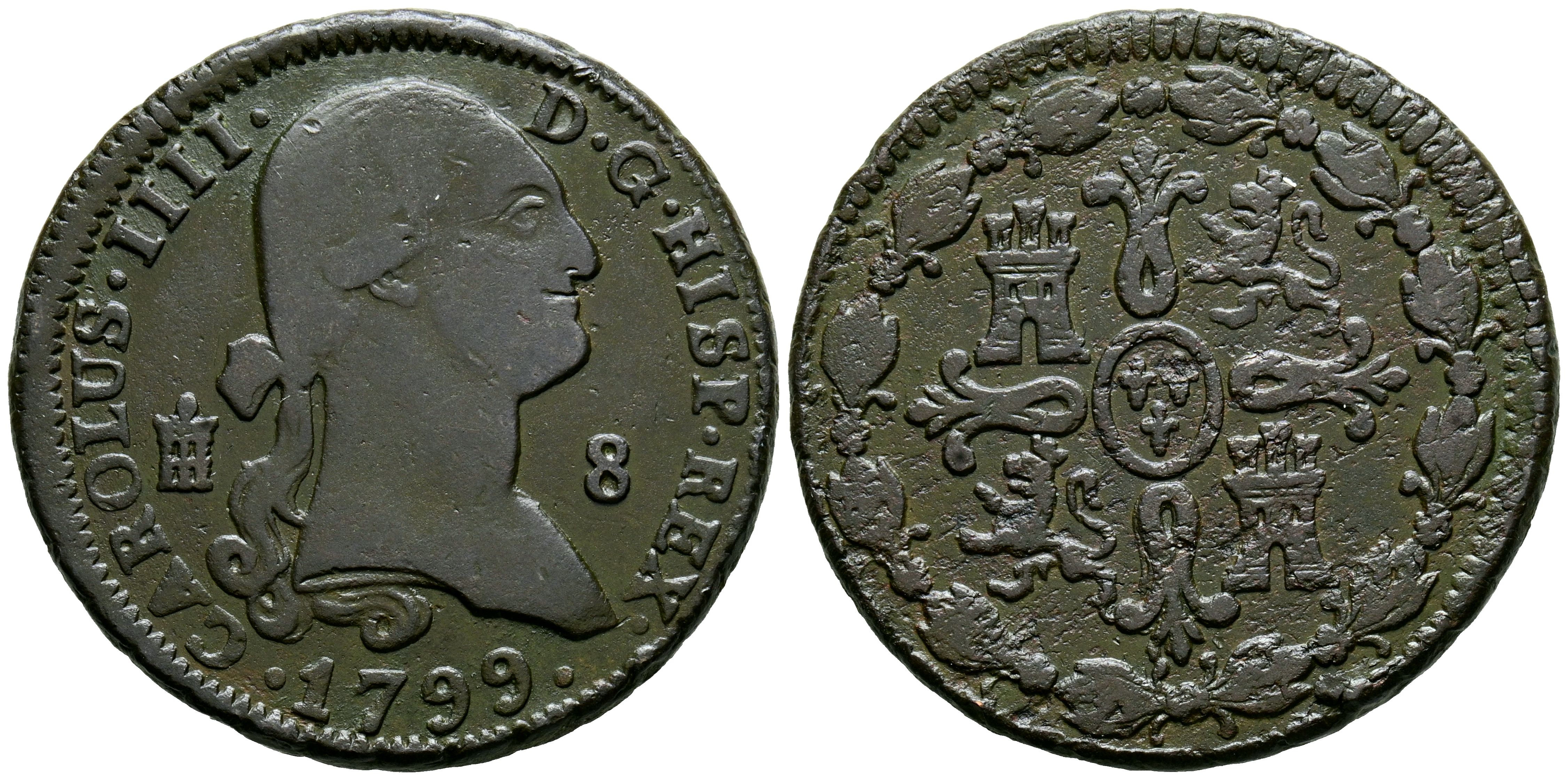 CARLOS IV (1788-1808). 8 Maravedís. (Ae. 11,88g/31mm). 1799. Segovia. (Cal-2019-76). MBC.