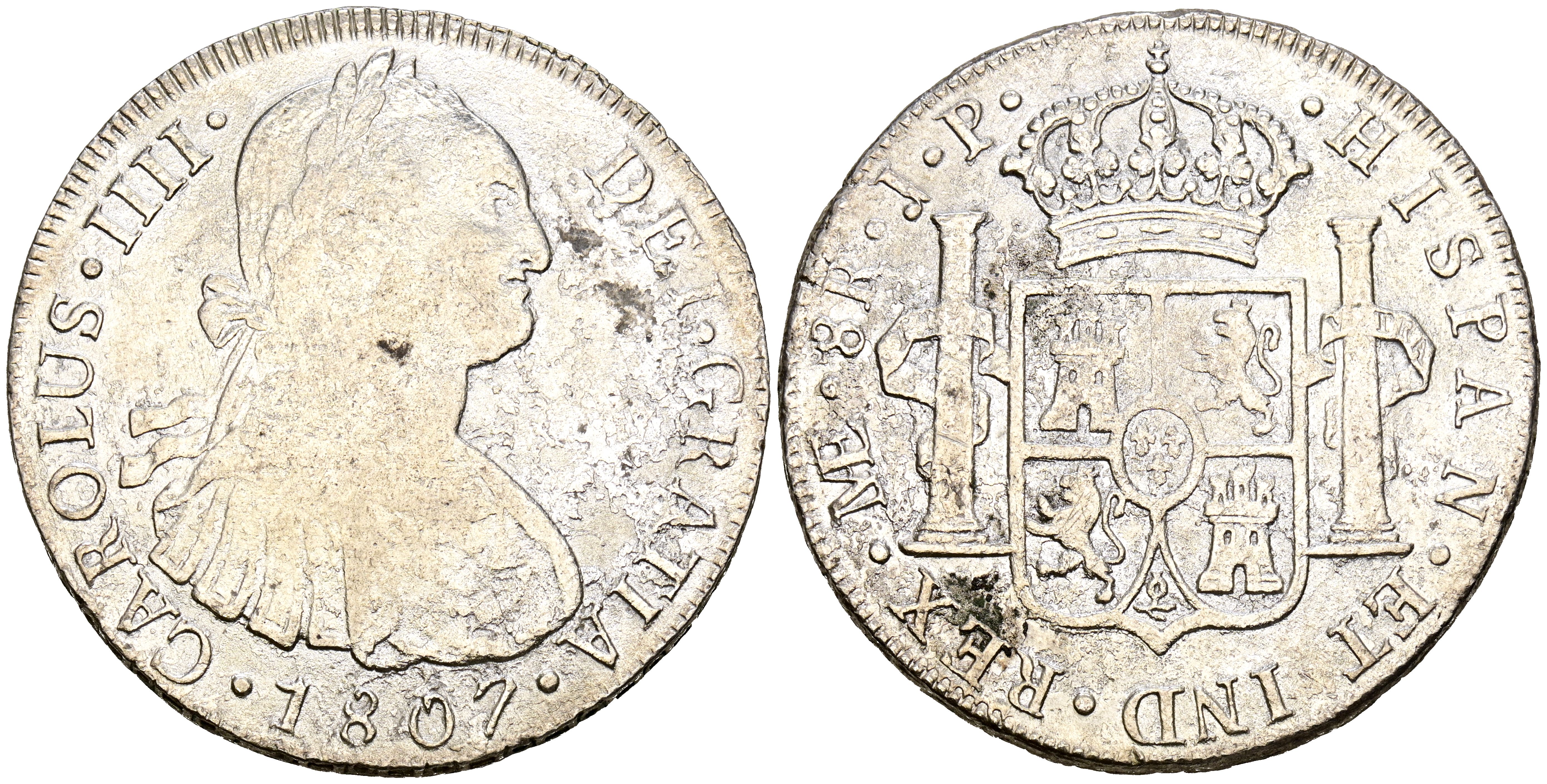 CARLOS IV (1788-1808). 8 Reales. (Ar. 26,27g/39mm). 1807. Lima JP. (Cal-2019-927). MBC. Oxidaciones.
