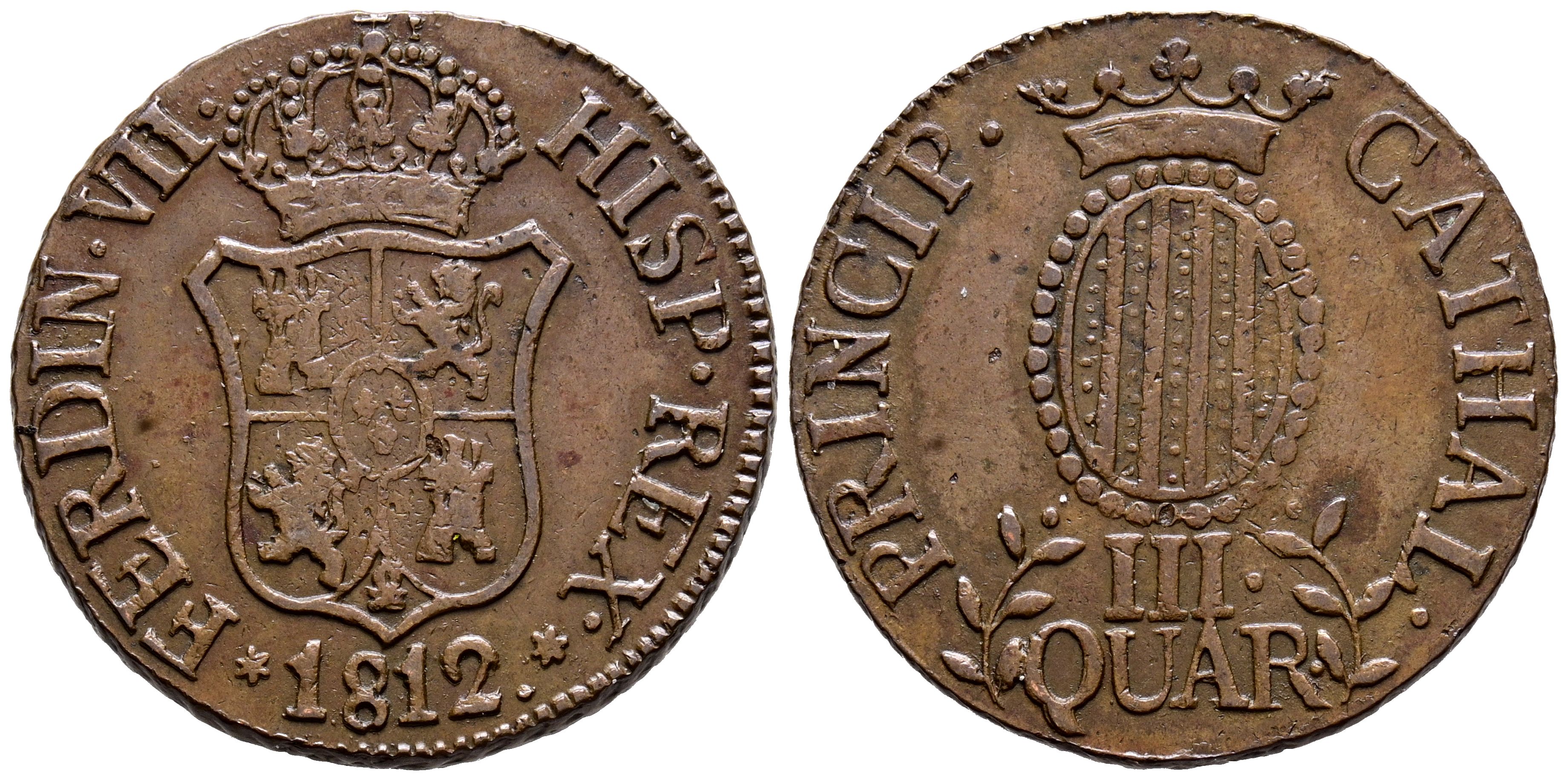 FERNANDO VII (1808-1833). 3 Cuartos. (Ae. 7,05g /26mm). 1812. Mallorca. (Cal-2019-11). MBC+.