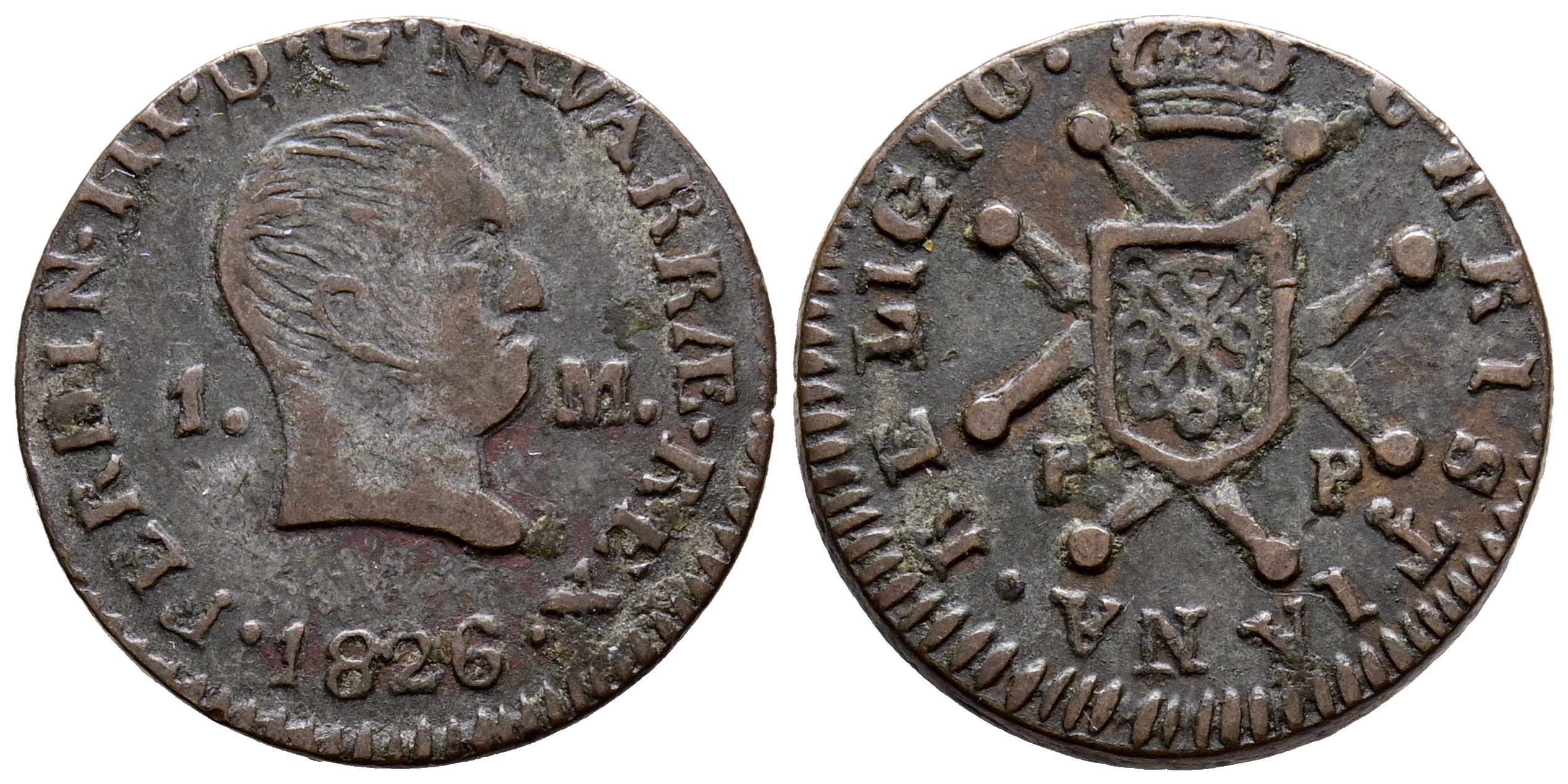 FERNANDO VII (1808-1833). 1 Maravedí. (Ae. 1,99g/17mm). 1826. Pamplona. (Cal-2019-37). MBC.