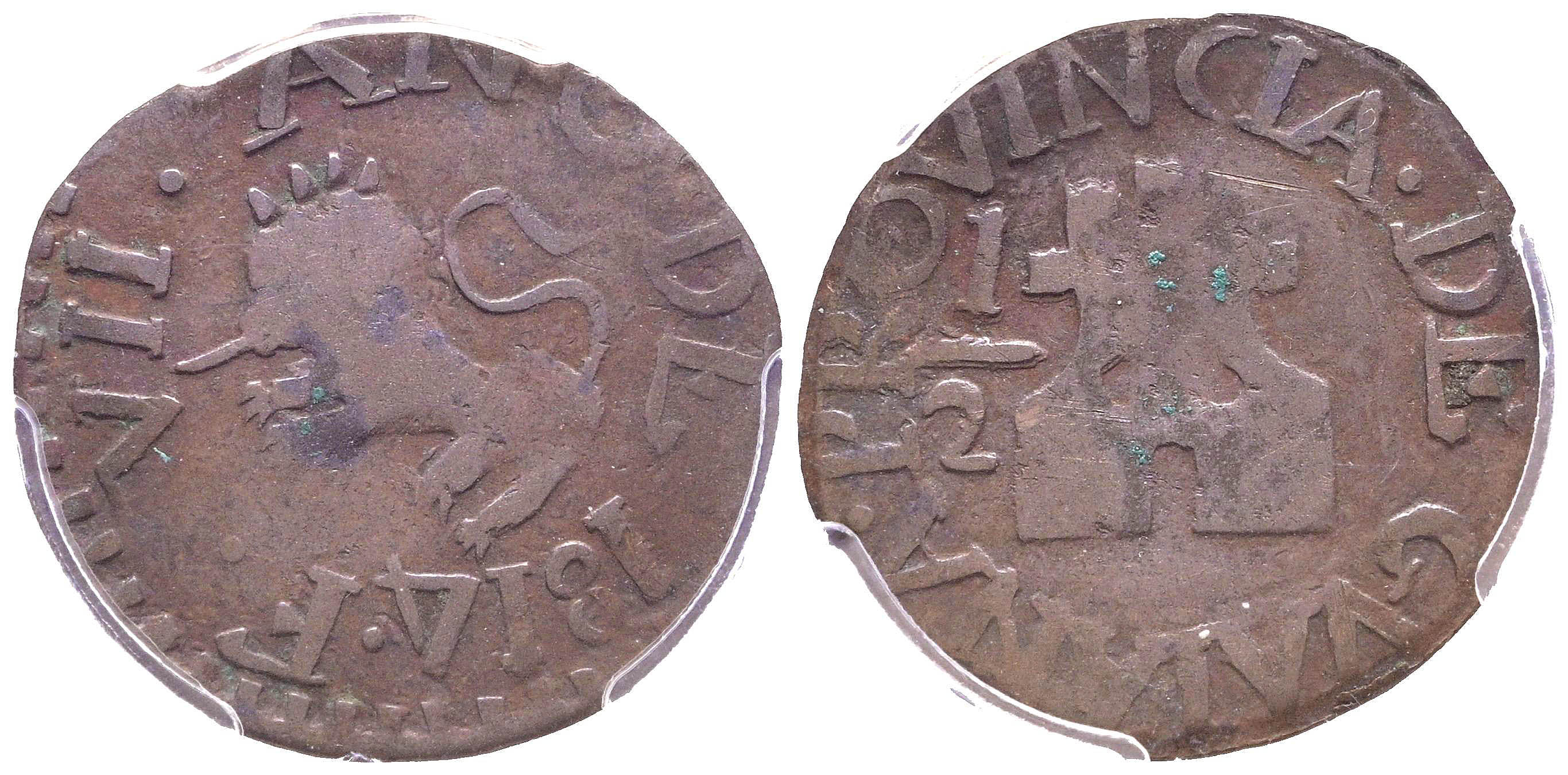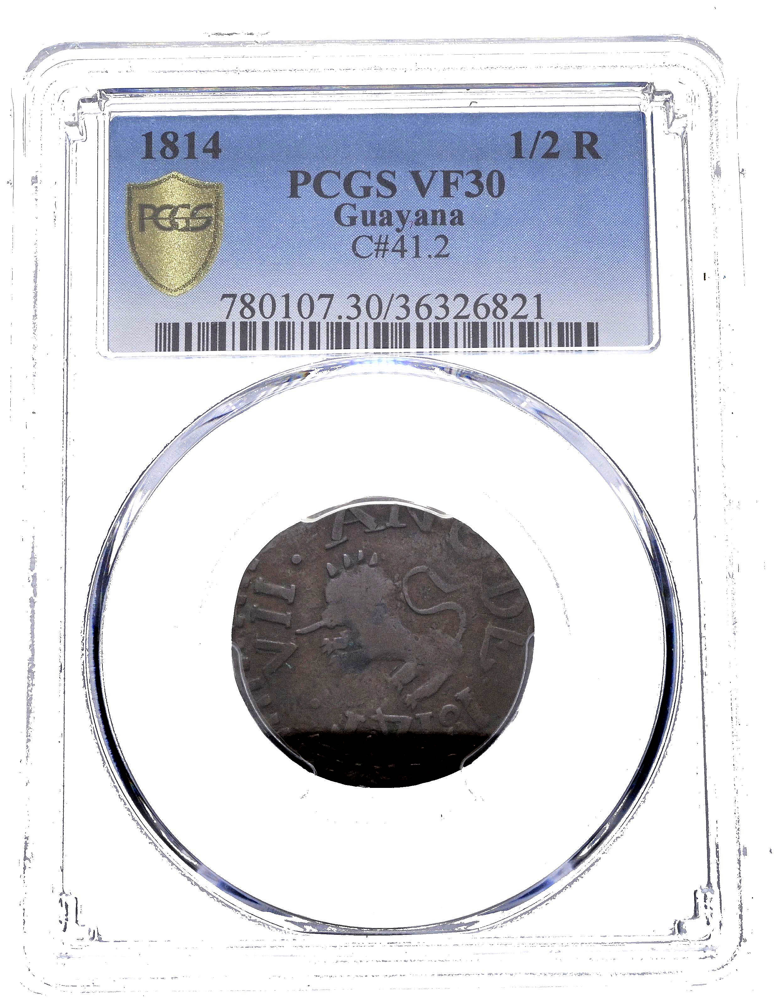 FERNANDO VII (1808-1833). 1/2 Real. (Ae. 2,50g/22mm)*. 1814. Guayana. (Cal-2019-344). Encapsulado por PCGS VF 30. *Peso y medidas teóricos.