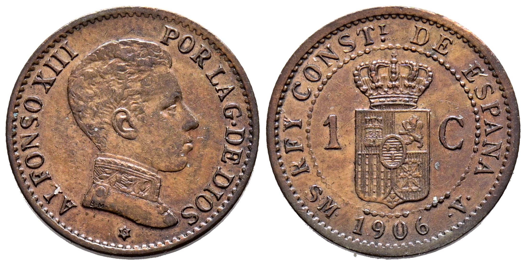 ALFONSO XIII (1885-1931). 1 Céntimo. (Ae. 1,09g/15mm). 1906 *6. Madrid SMV. (Cal-2019-1). EBC-. Rara y más en esta calidad.
