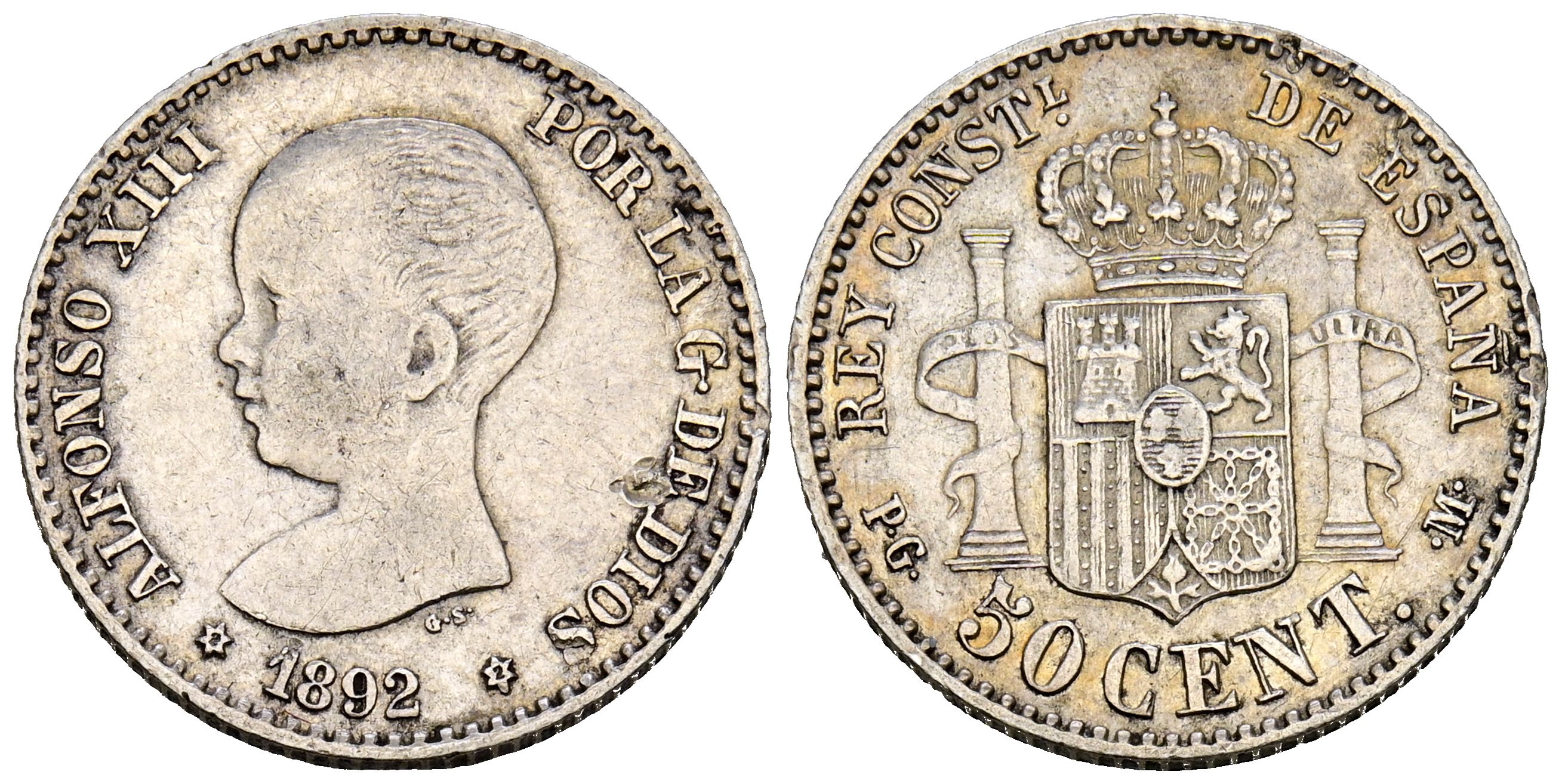 ALFONSO XIII (1885-1931). 50 Céntimos. (Ar. 2,51g/18mm). 1892/82 *2-2. Madrid PGM. (Cal-2019-29). MBC. Escasa.