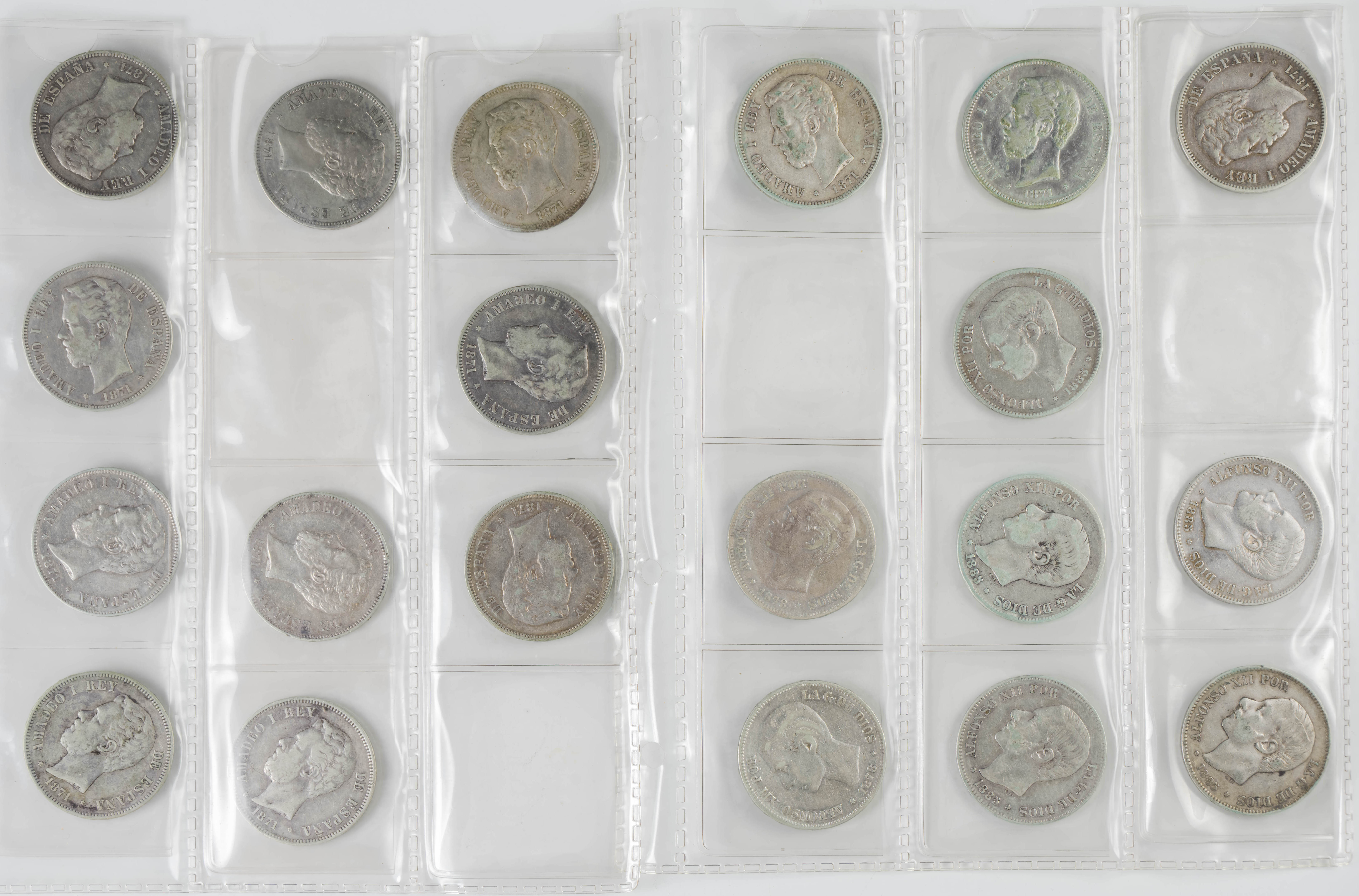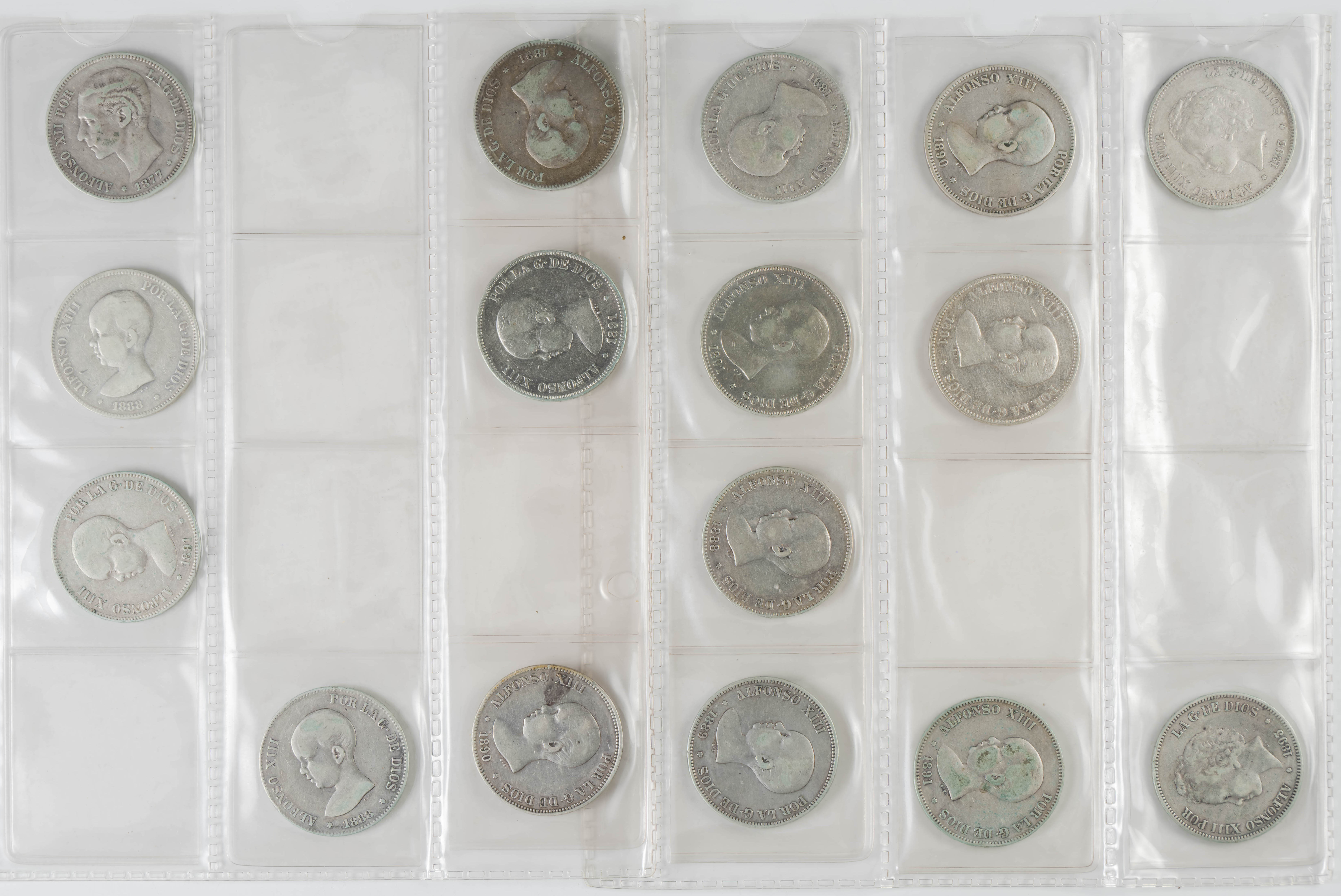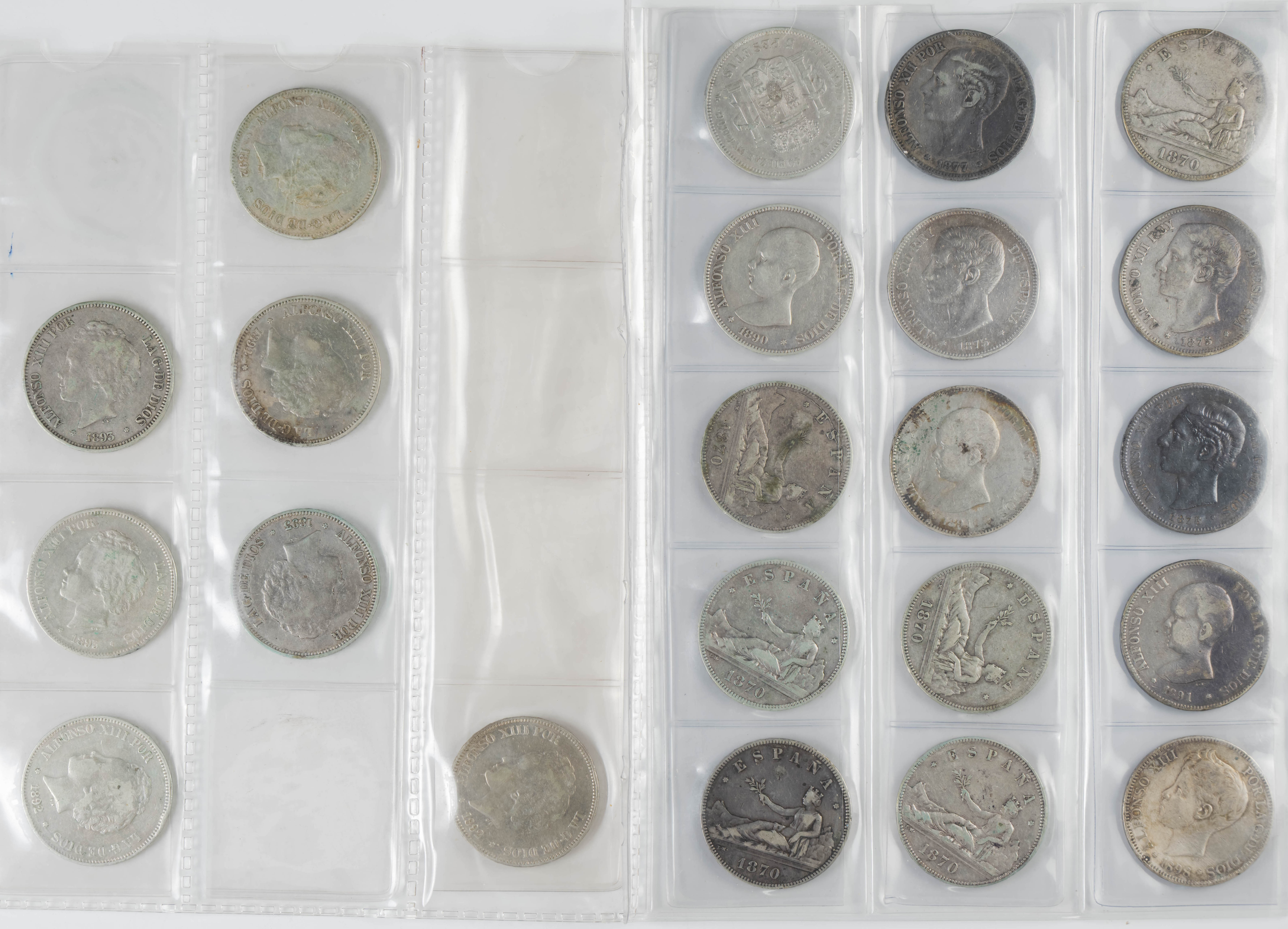 CENTENARIO DE LA PESETA. Magnífico conjunto de alrededor de 200 monedas en plata del periodo, de las cuáles más de 100 son del módulo de 5 Pesetas. Gran variedad de fechas representadas. Diferentes estados de conservación. A EXAMINAR.