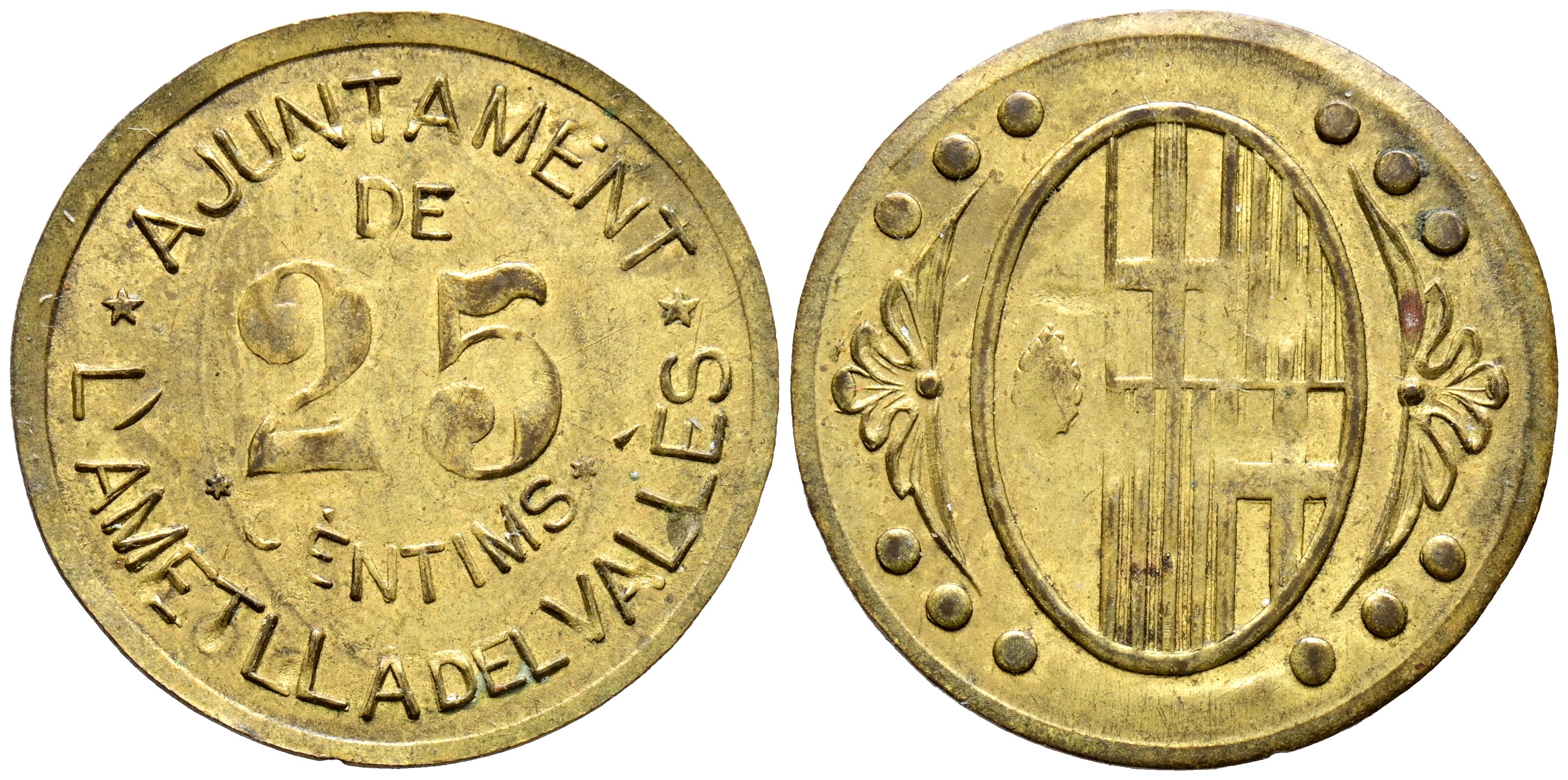 L'AMETLLA DEL VALLES. 25 Céntimos. (Ln. 1,850g/26mm). (Cal-2019-1). MBC. Escasa.