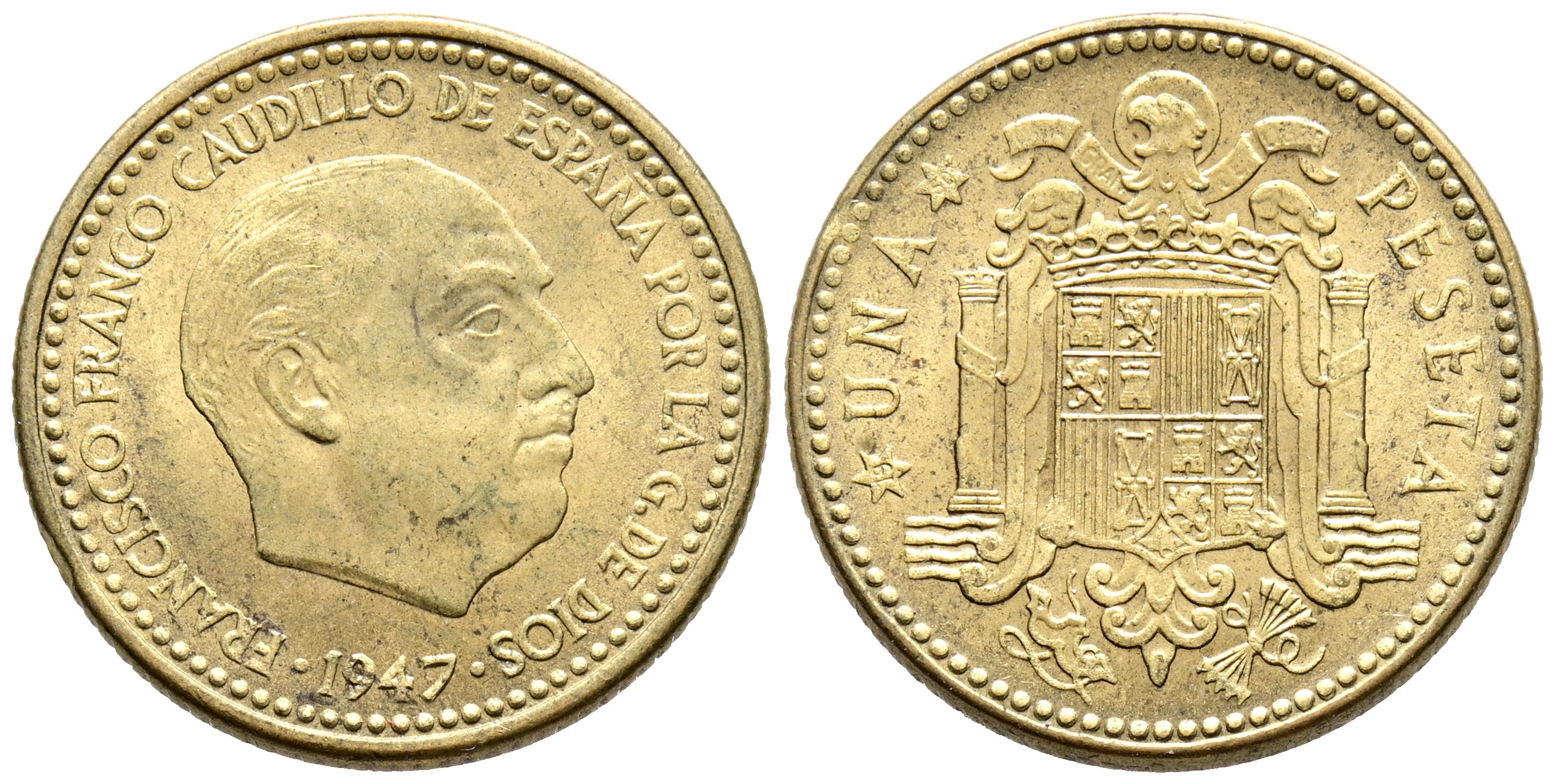 ESTADO ESPAÑOL (1936-1975). 1 Peseta. (Al-Ae. 3,45g/21mm). 1947 *19-50. Madrid. (Cal-2019-50). SC-. Escaso ejemplar y más así.