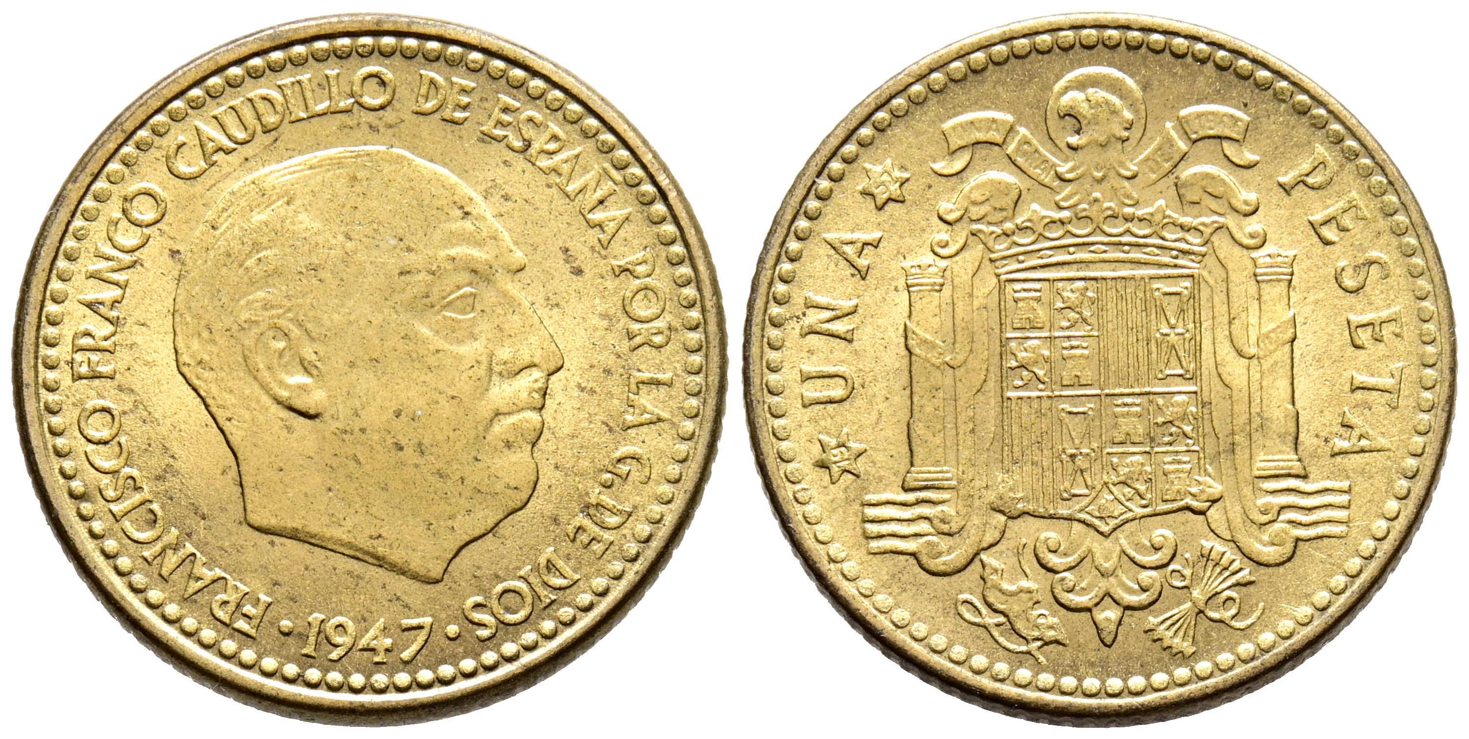 ESTADO ESPAÑOL (1936-1975). 1 Peseta. (Al-Ae. 3,40g/21mm). 1947 *19-52. Madrid. (Cal-2019-52). SC-.